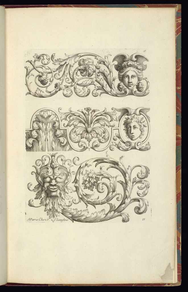 Print, Grotesque Ornament Designs; Designed by Jean Bérain, the elder (French, 1640 – 1711), Jean Bérain the Younger (1674-1726); Published by Nicolas Langlois; France; etching and engraving on laid paper; Purchased for the Museum by the Advisory Council; 1921-6-238-19