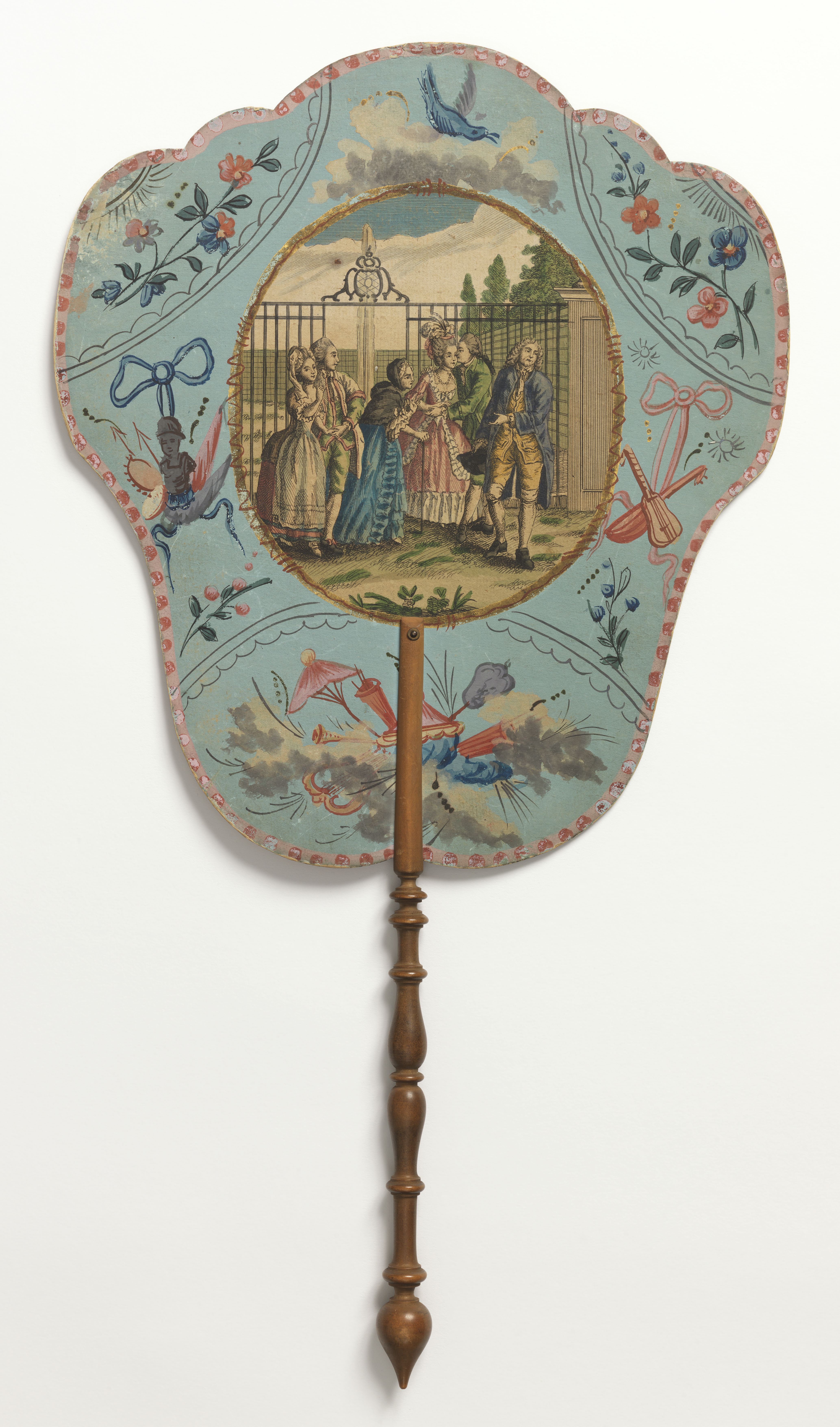 Handscreen (France); engraved, hand-colored and painted paper leaf, turned wood handle; H x W: 45 x 24.7 cm (17 11/16 x 9 3/4 in.); Purchased for the Museum by the Advisory Council; 1921-6-24-b