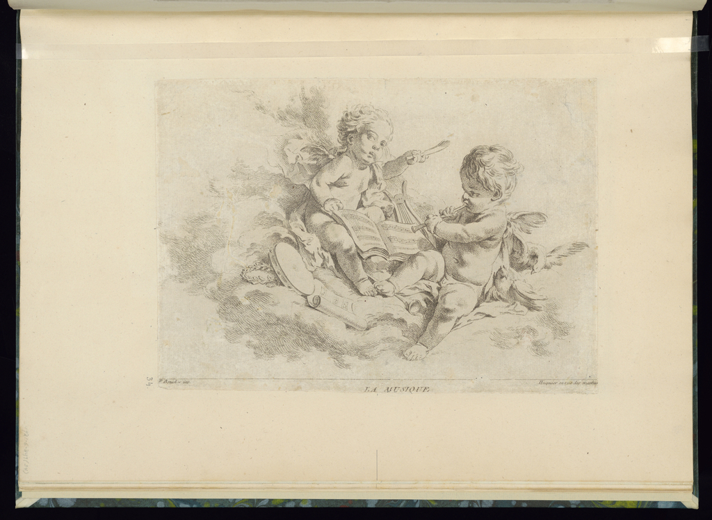 Print, LA MUSIQUE; Designed by François Boucher (French, 1703–1770); Print Maker: Louis-Félix Delarue (French, 1730 – 1777); Published by Gabriel Huquier (French, 1695–1772); France; etching on laid paper; Purchased for the Museum by the Advisory Council; 1921-6-247-34