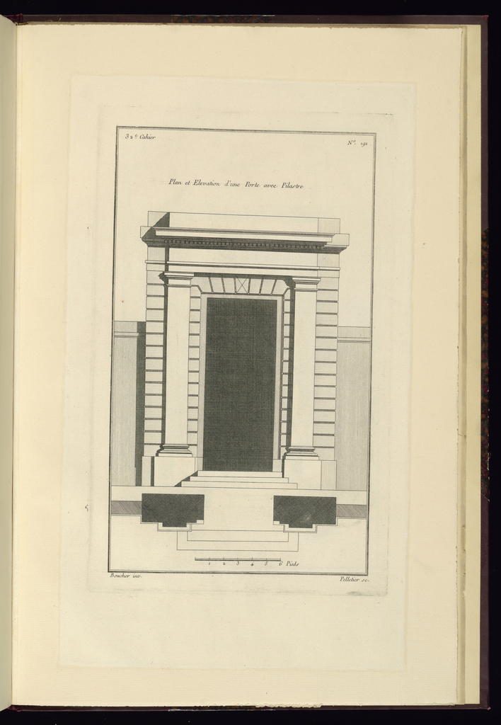 Printed upper left, in plate: 32e. Cahier; Printed upper center, in plate: Plan et Elevation d'une Porte avec Pilastre; Printed upper right, in plate: No. 191