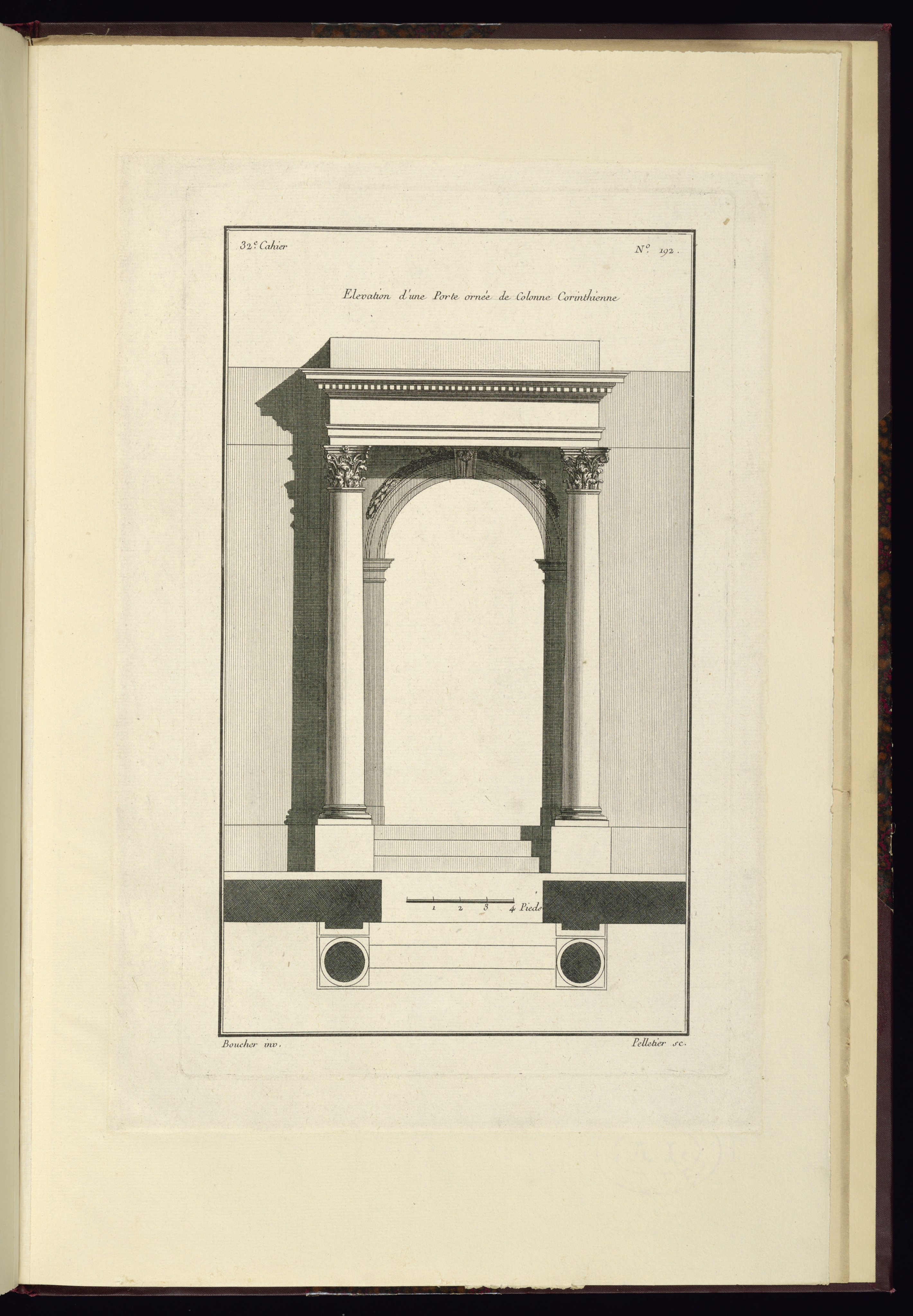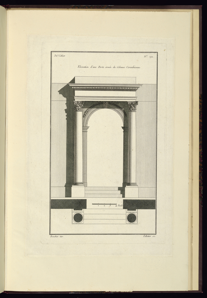 Printed upper left, in plate: 32e. Cahier; Printed upper center, in plate: Elevation d'une Porte ornée de Colonne Corinthienne; Printed upper right, in plate: No. 192.