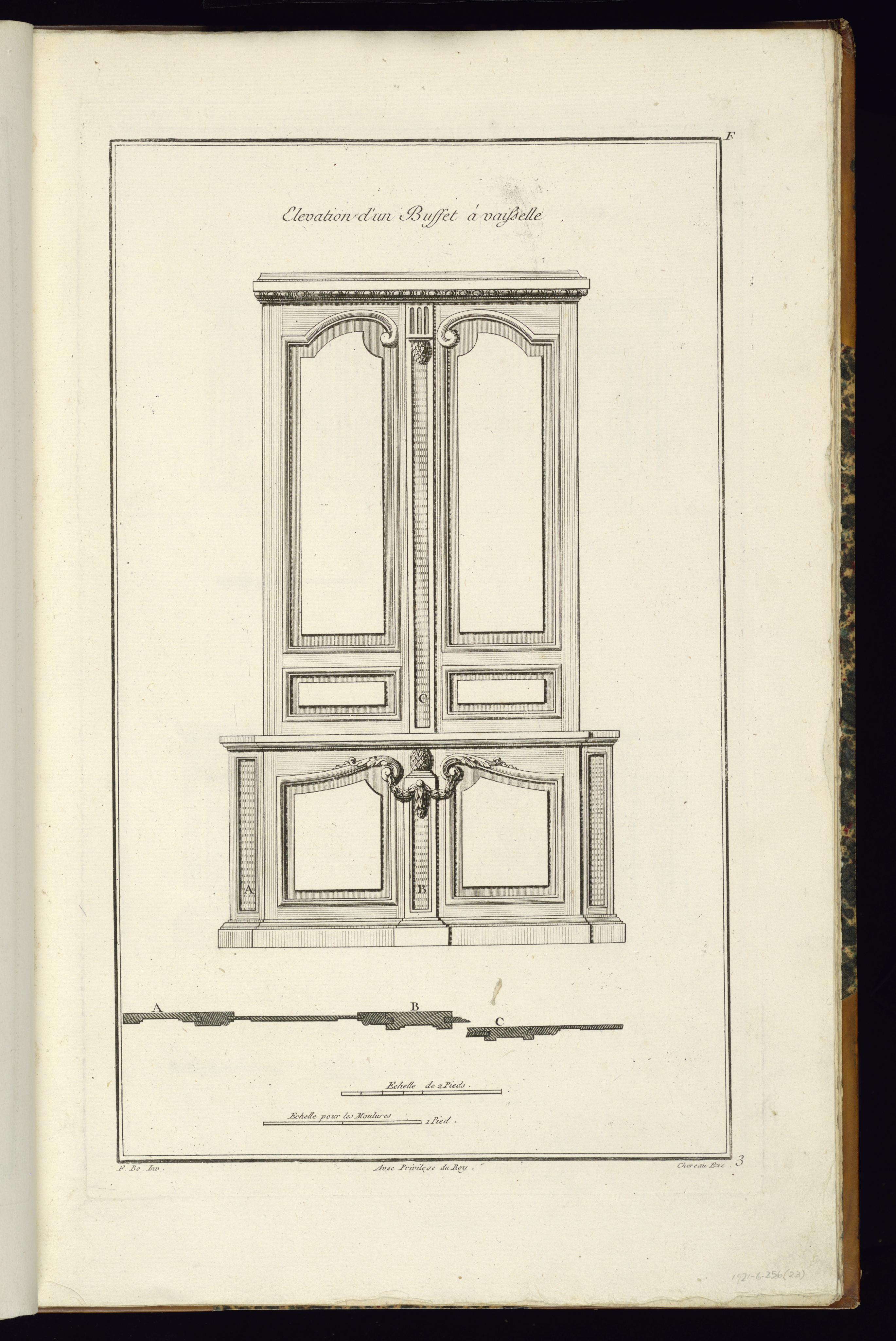 Printed upper center, in plate: Elevation d'un Buffet à vaisselle; Printed upper right, in plate: F; Printed lower center, in plate: Avec Privilege du Roy.; Printed lower right, in plate: Chereau Exc. 3; Inscribed in graphite, lower right, in margin: 1921-6-256(23)
