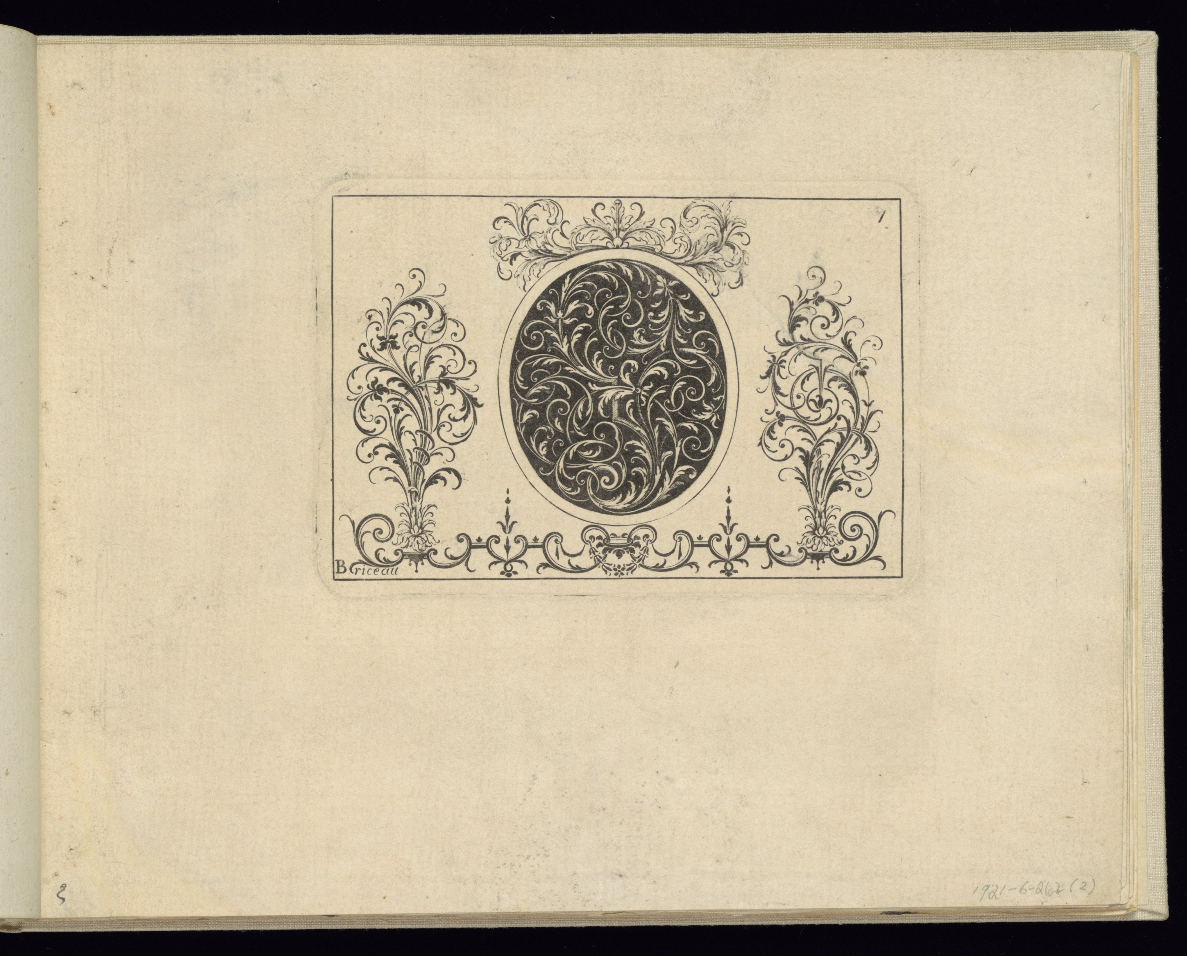 Print, Designs for Ornament; Designed by Briceau (French, 16..–17..); France; engraving on laid paper; Purchased for the Museum by the Advisory Council; 1921-6-262-2