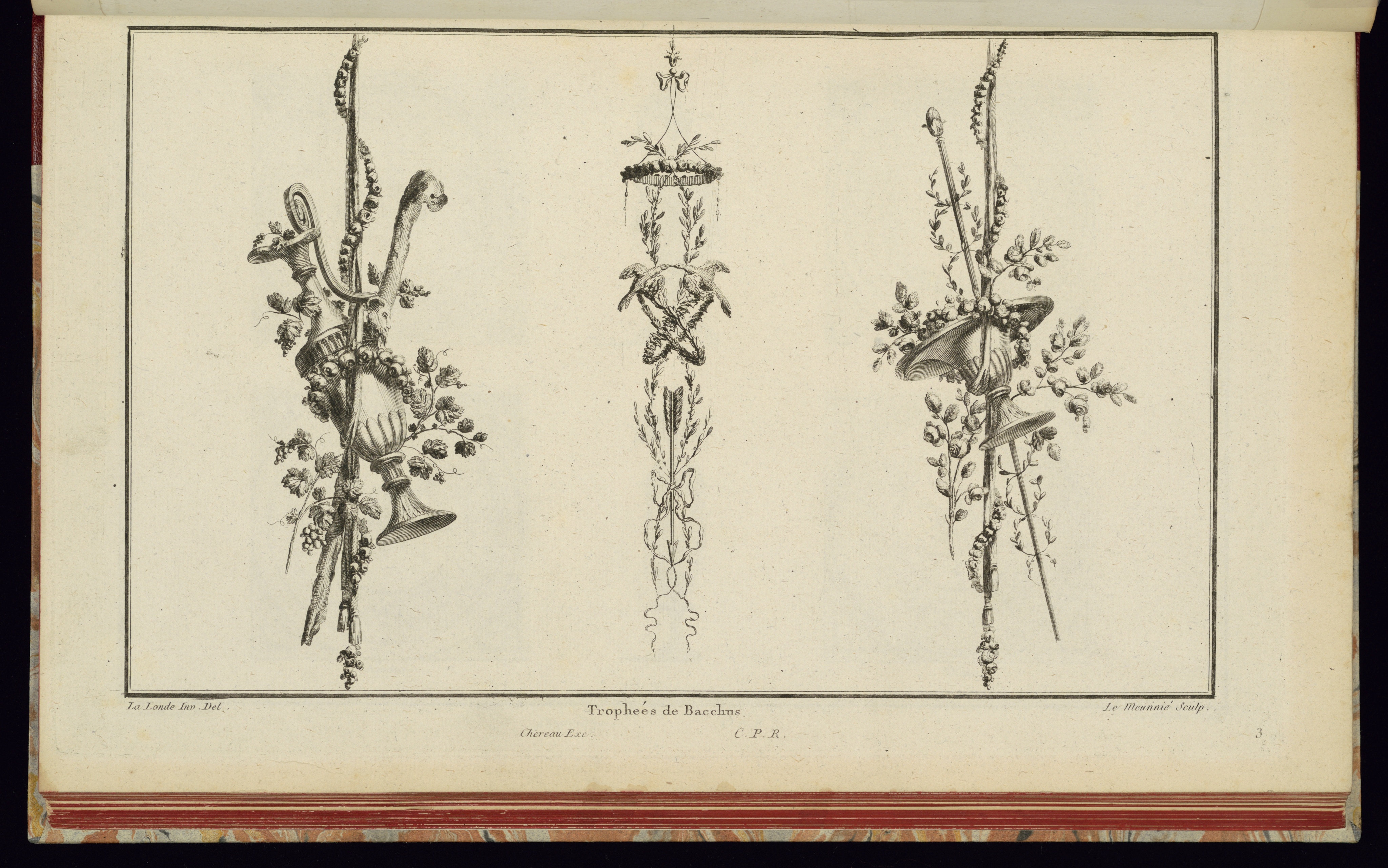 Printed lower right, in plate: 3; Printed lower center, in plate: Trophées de Bacchus / Chereau Exc. C.P.R.