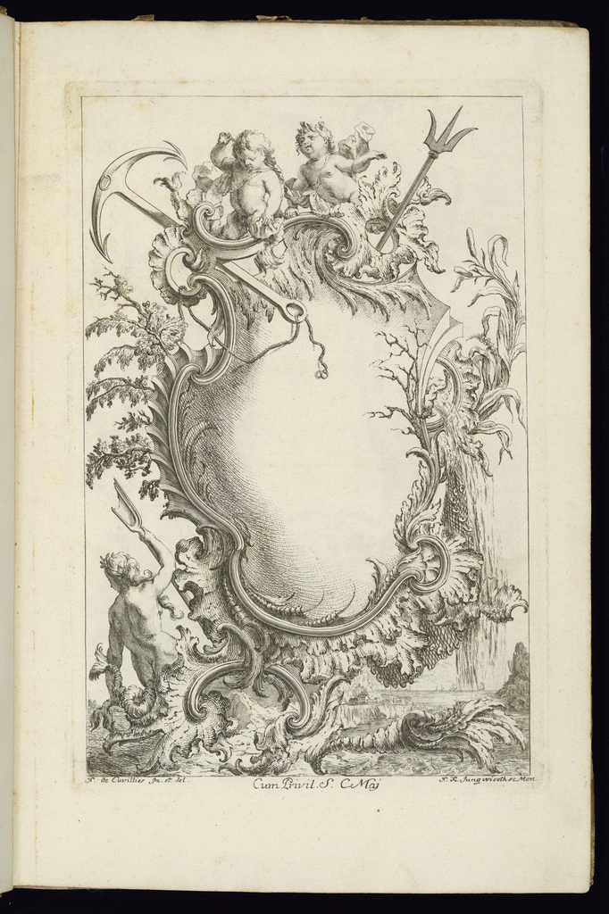 This is a Bound print. It was designed by François de Cuvilliés the Elder and published by François de Cuvilliés the Elder and print maker: Franz Xaver Andreas Jungwierth. It is dated 1738 and we acquired it in 1920. Its medium is etching and engraving on paper. It is a part of the Drawings, Prints, and Graphic Design department.