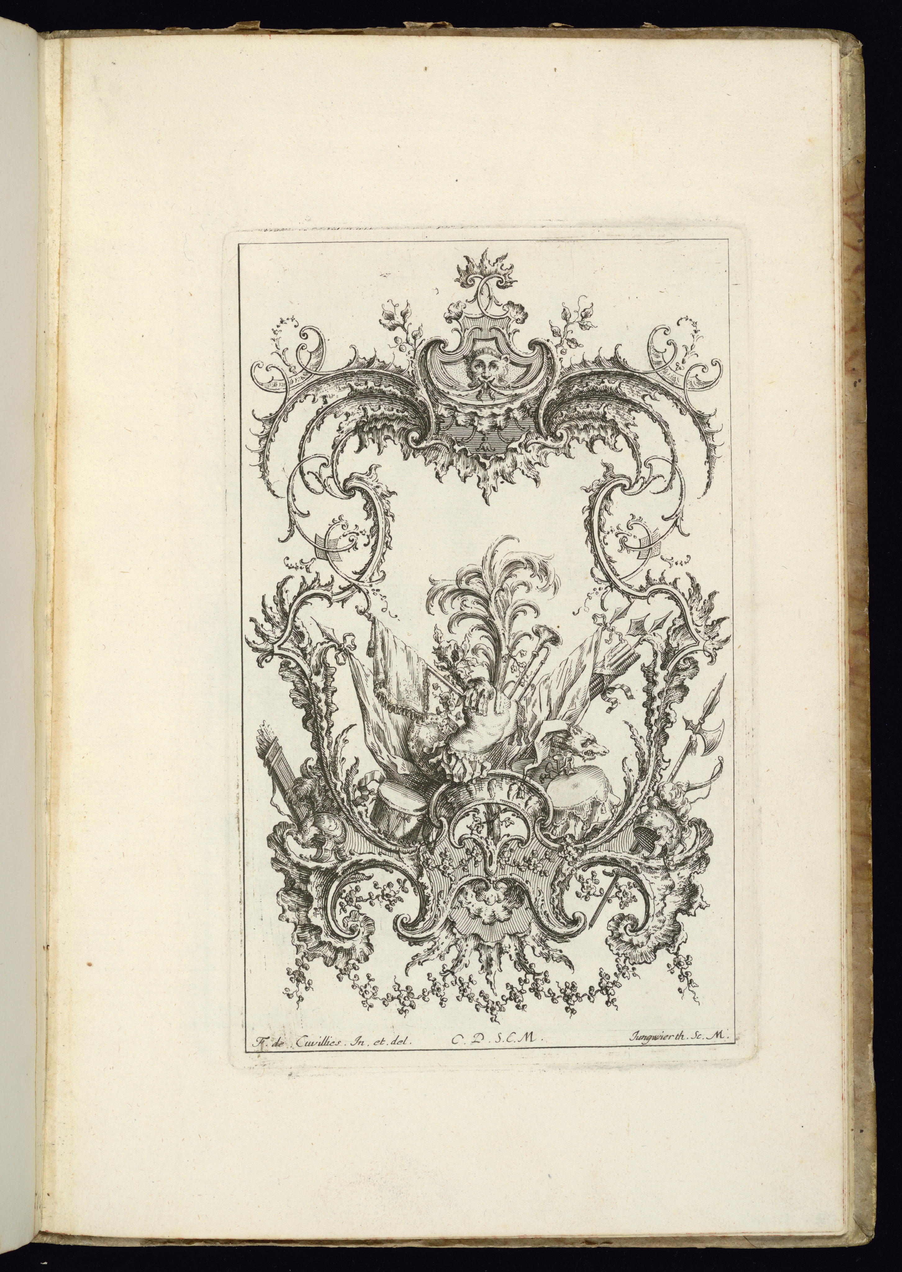 This is a Bound print. It was designed by François de Cuvilliés the Elder and published by François de Cuvilliés the Elder and print maker: Franz Xaver Andreas Jungwierth. It is dated 1738 and we acquired it in 1920. Its medium is engraving on paper. It is a part of the Drawings, Prints, and Graphic Design department.