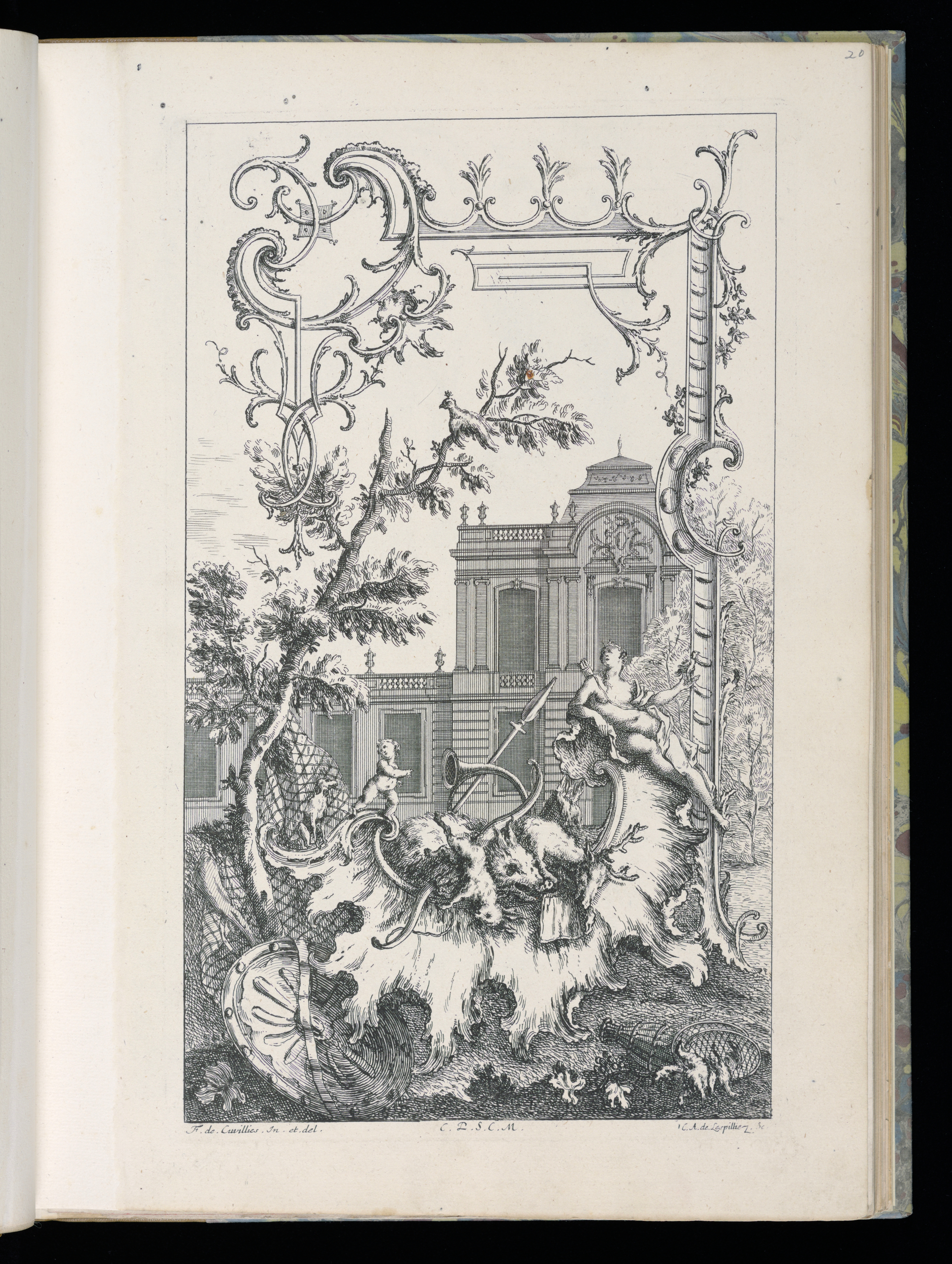 This is a Bound print. It was designed by François de Cuvilliés the Elder and published by François de Cuvilliés the Elder and print maker: Charles-Albert Lespilliez. It is dated 1738–45 and we acquired it in 1920. Its medium is engraving on cream laid paper. It is a part of the Drawings, Prints, and Graphic Design department.