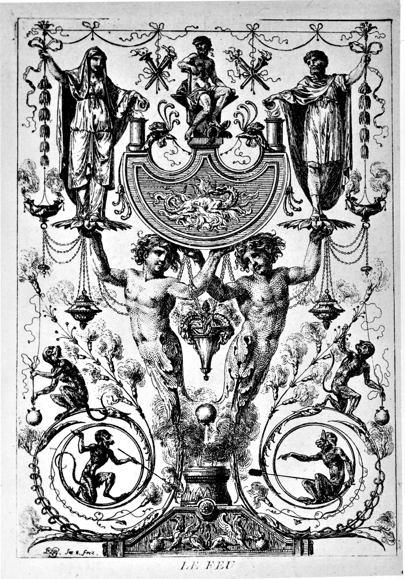 Bound Print, Le Feu; Designed by Jean Démosthène Dugourc (French, 1749–1825); Published by Jacques-François Chéreau (French, 1742 - 1794); France; etching on paper; 26 x 18.5 cm (10 1/4 x 7 5/16 in.); Purchased for the Museum by the Advisory Council; 1921-6-298-3