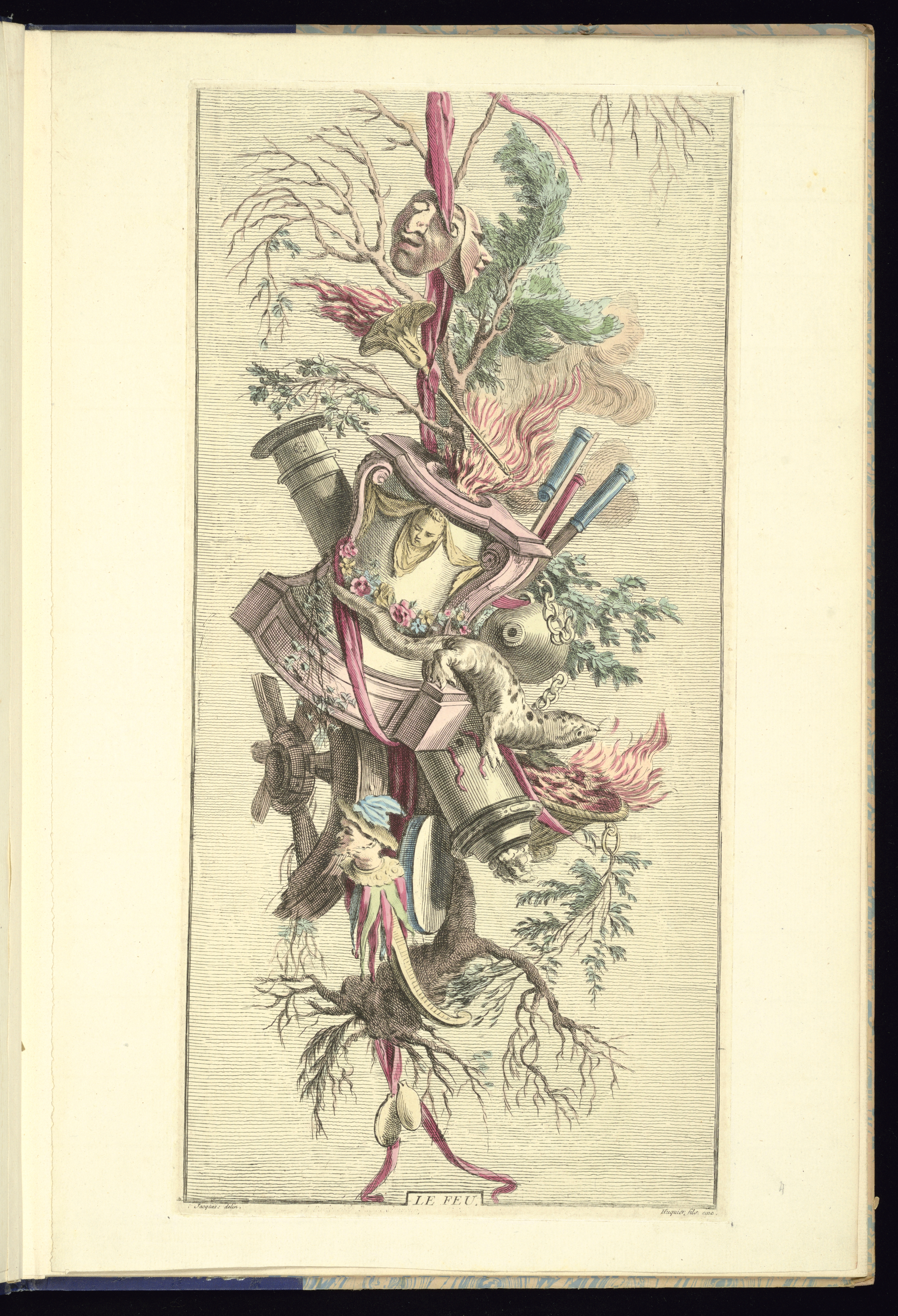 This is a Print. It was designed by Maurice Jacques and published by Jacques-Gabriel Huquier and retailed by Louis-Joseph Mondhare. It is dated 1758–64 and we acquired it in 1920. Its medium is hand-colored etching and engraving on paper. It is a part of the Drawings, Prints, and Graphic Design department.