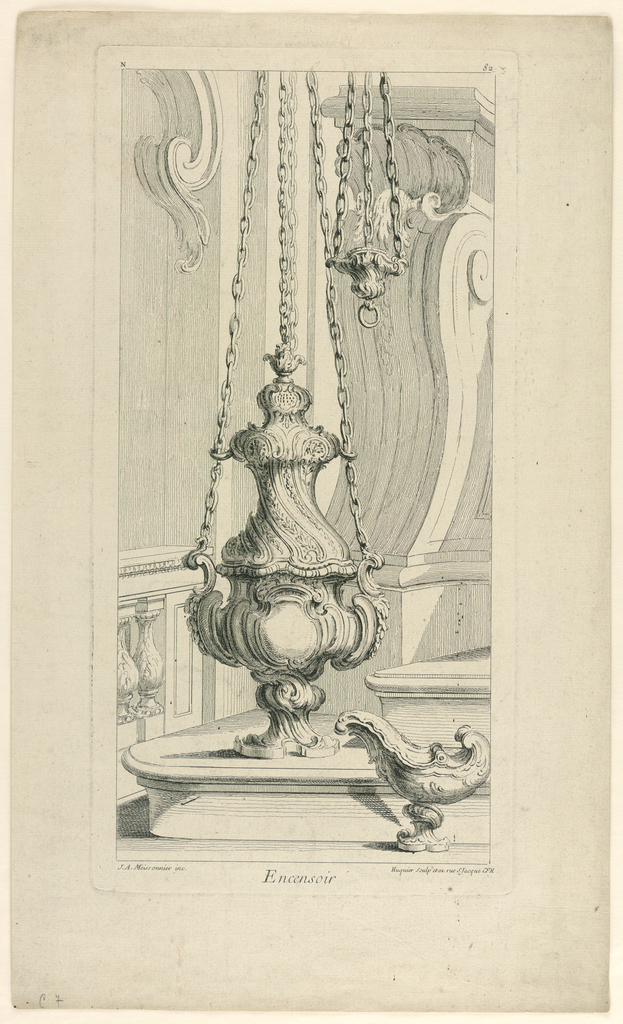 Print, Encensoir; Designed by Juste-Aurèle Meissonnier (French, b. Italy, 1695–1750); Print Maker: Gabriel Huquier (French, 1695–1772); engraving on paper; Purchased for the Museum by the Advisory Council; 1921-6-31-5