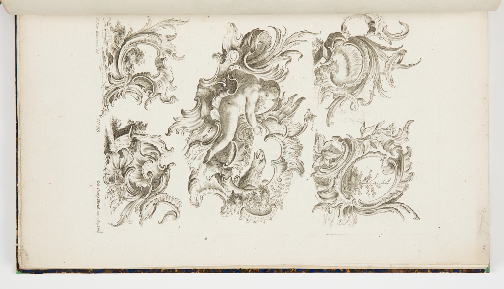 Print, Rocaille Cartouche Designs; Designed by Franz Xaver Habermann (German, 1721 – 1796); Published by Johann Georg Hertel (German, ca. 1700–1776); Germany; etching on off white laid paper; Purchased for the Museum by the Advisory Council; 1921-6-317-20