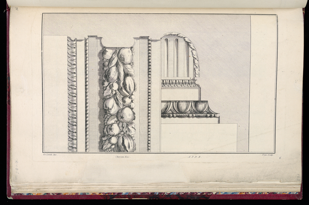 Printed upper right, in plate: R; Printed lower right, in plate: 6; Printed lower center, in plate: Chereau Exc. A.P.D.R.; Inscribed in graphite, upper left, in margin: 96; Inscribed in graphite, lower right, in margin: 103; Inscribed in graphite, lower left, in margin: 1921-6-330' (102)