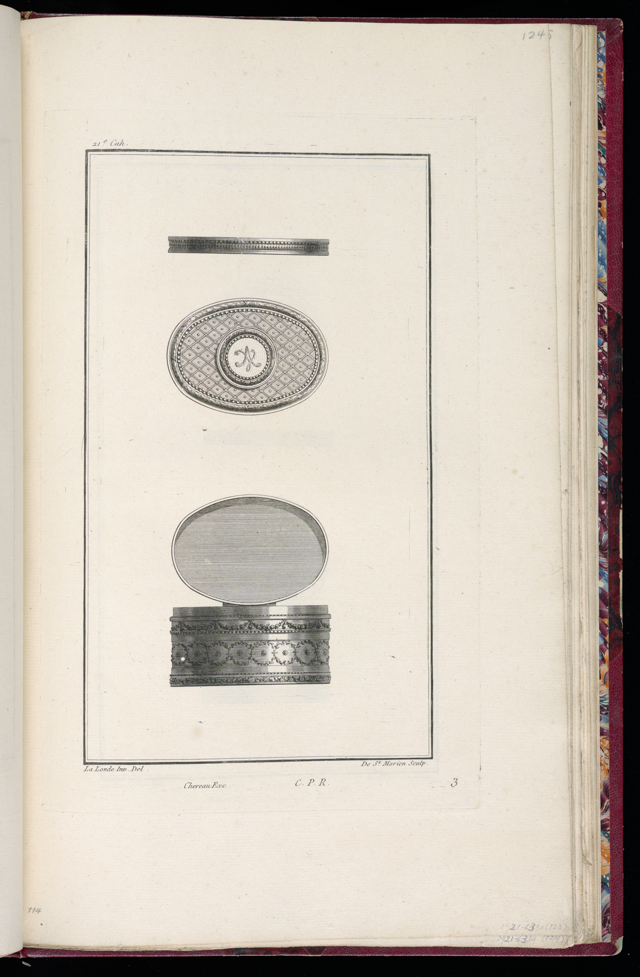 Printed upper left, in plate: 21e. Cah.; Printed lower right, in plate: 3; Printed lower center, in plate: Chereau Exc. C.P.R.; Inscribed in graphite, upper right, in margin: 124; Inscribed in graphite, lower right, in margin: 1921-6330(123); Inscribed in graphite, lower left, in margin: 114