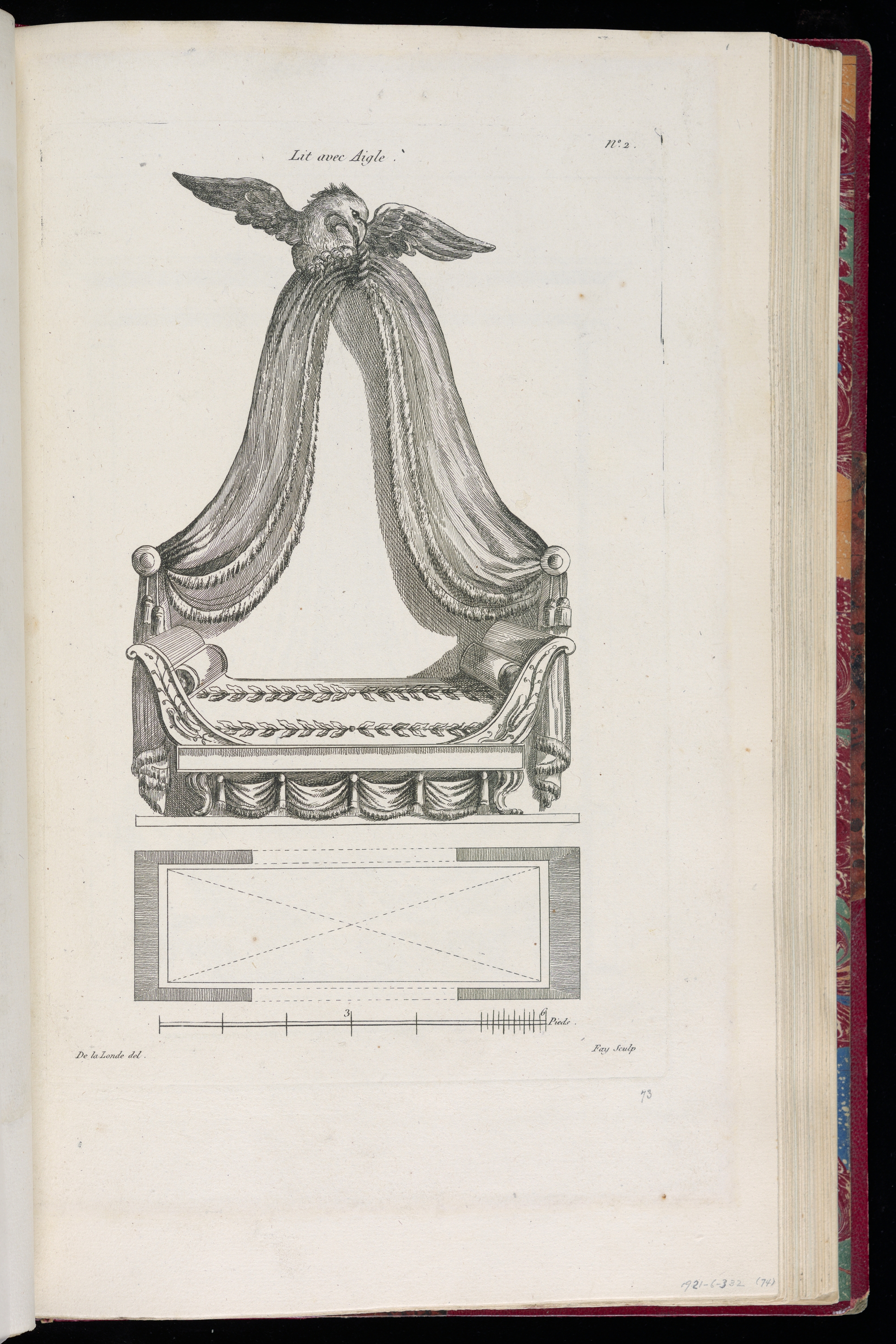 Printed upper center, in plate: Lit avec Aigle; Printed upper right, in plate: No. 2; Inscribed in graphite, lower right, in margin: 73 / 1921-6-332 (74)