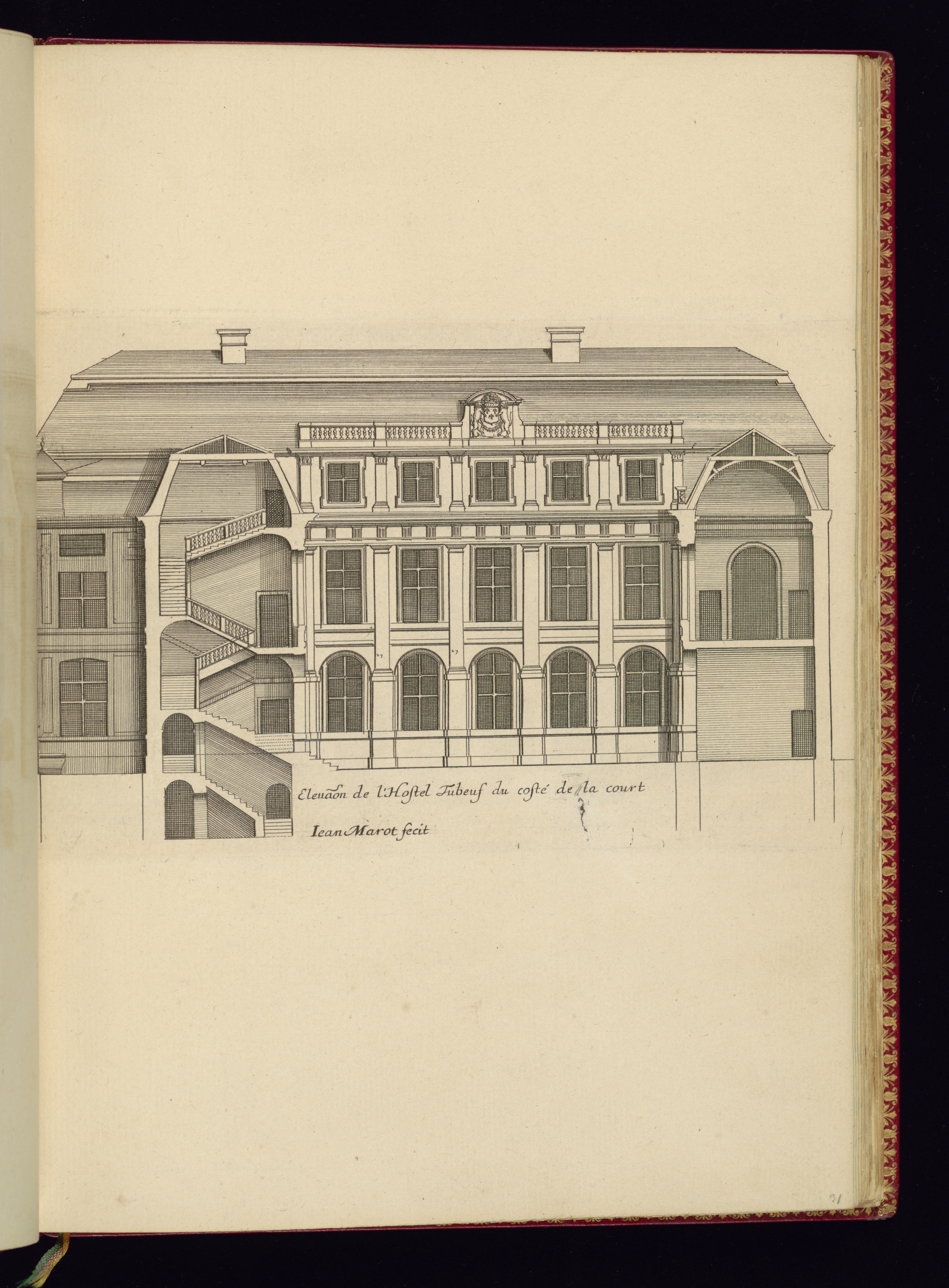 Lettered in plate, lower center: Elevaon de l’Hostel Tubeuf du costé de la court