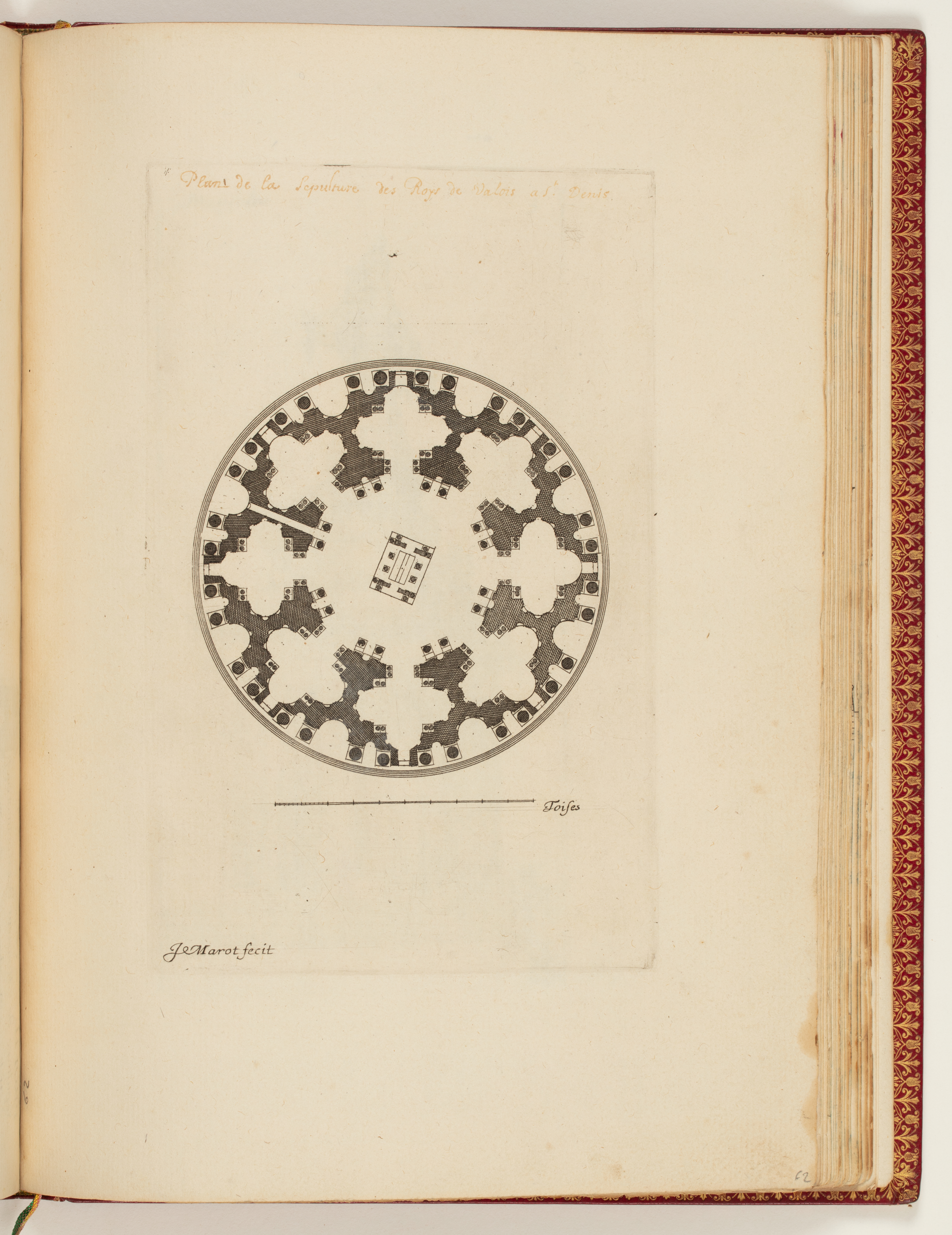 Inscribed in red ink, in plate, upper center: Plan de la Sepulture des Roys de Valois a St. Denis; lettered in plate, lower right: Toises