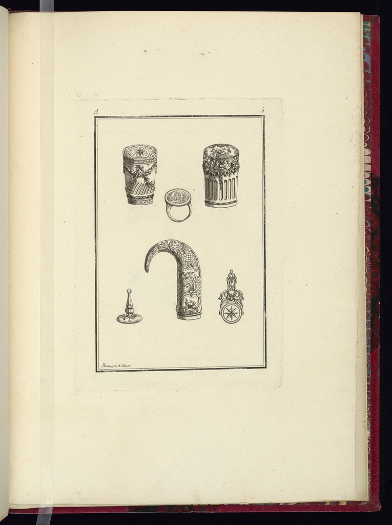 Print, Ring, Cane Handles and Seal Designs; Designed by Pierre Moreau (French, 1722 – 1798); Published by Jean-Baptiste Crépy (French, active 1753 – d. 1796); France; etching and engraving on laid paper; Purchased for the Museum by the Advisory Council; 1921-6-369-11