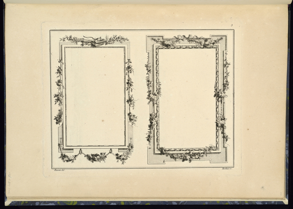 Print, Two Frame Designs; Designed by Pierre Ranson (French, 1736–1786); Print Maker: Pierre-Gabriel Berthault (French, 1737–1831); Published by Esnauts et Rapilly (French, 1770 - 1820); etching on laid paper; Purchased for the Museum by the Advisory Council; 1921-6-389-102