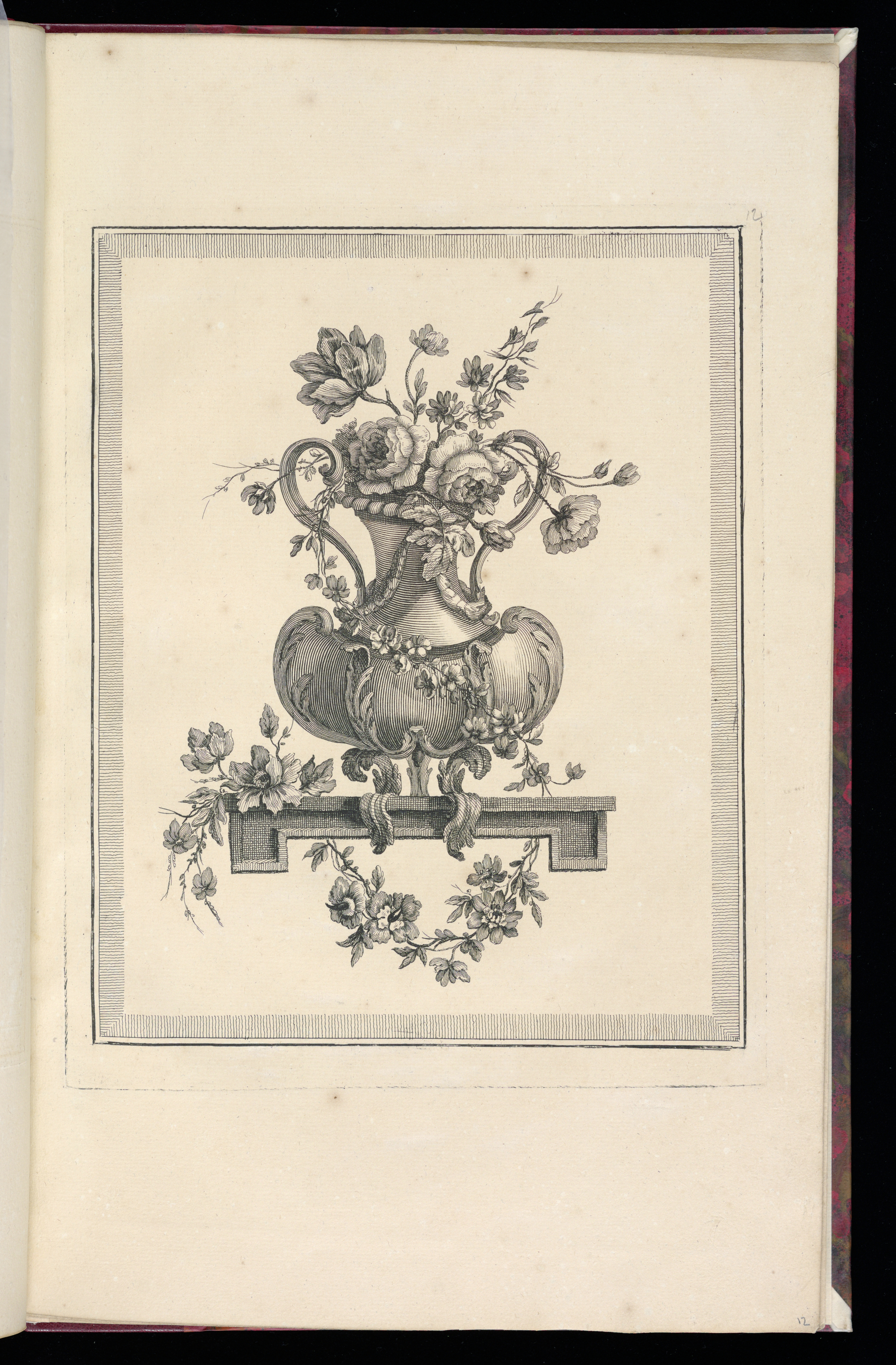 Print, Vase with Flowers; Designed by Pierre Ranson (French, 1736–1786); Print Maker: Louis-Sébastien Berthet (French, 1750 – 1812); Published by Louis-Joseph Mondhare (French, 1734–1799); etching and engraving on laid paper; Purchased for the Museum by the Advisory Council; 1921-6-394-12