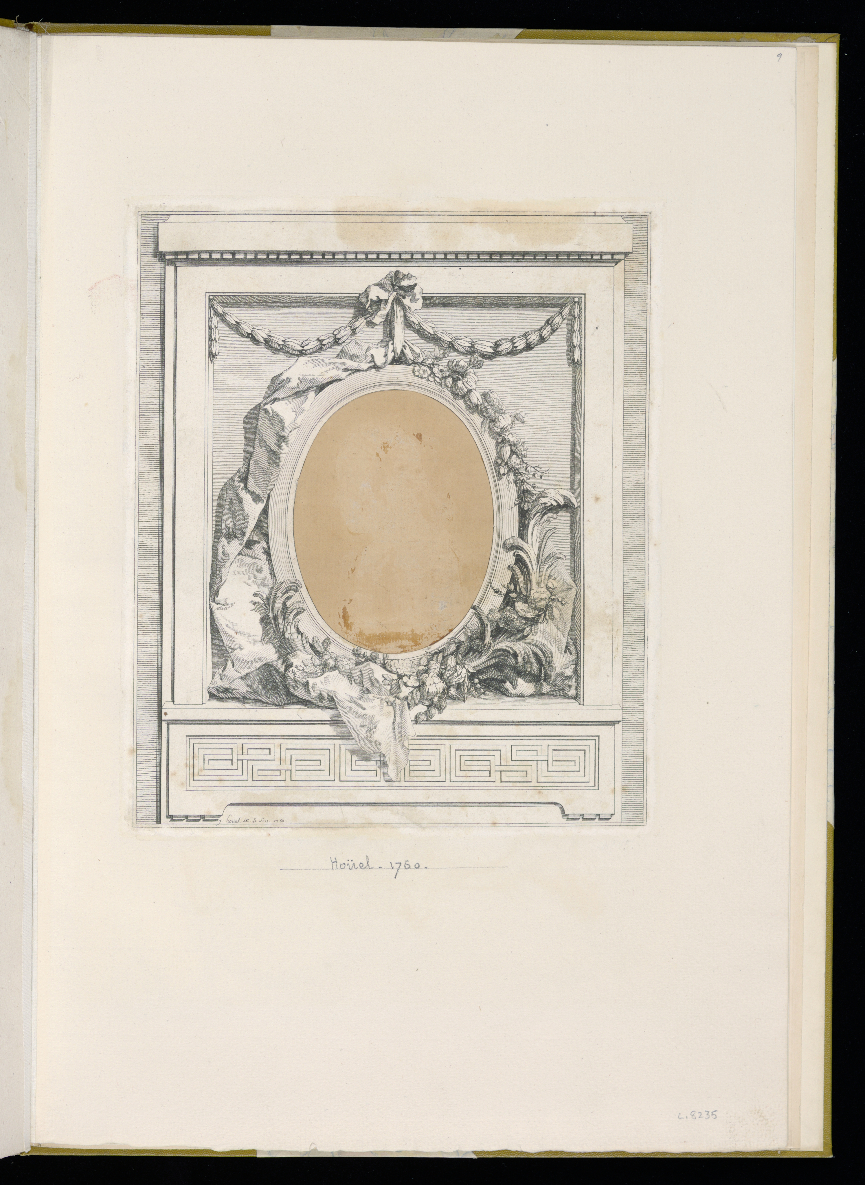 Album Of Frames, Design for a Frame; Designed by Jean-Pierre-Louis-Laurent Houël (French, 1735–1813); etching and engraving on paper; Purchased for the Museum by the Advisory Council; 1921-6-400-9
