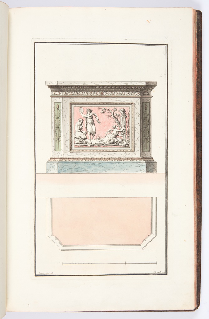 Print, POELE dans le genre modern, à pans coupés, avec bas-relief, au choix des personnes; Designed by Louis Bosse (French); Published by Ollivier (French); Print Maker: Louis-Gustave Taraval (French, 1738 – 1794); France; etching and hand colored watercolor on paper; Sheet: 41.4 × 26.1 cm (16 5/16 × 10 1/4 in.) Platemark: 32.8 × 19.2 cm (12 15/16 × 7 9/16 in.) Image: 31.7 × 18.1 cm (12 1/2 × 7 1/8 in.); Purchased for the Museum by the Advisory Council; 1921-6-407-14
