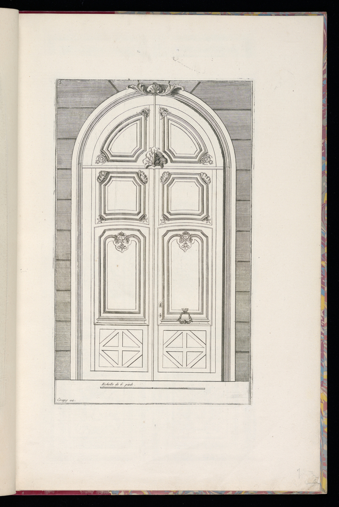 Print, Design for Doors for a Porte Cochère; Print Maker: Louis Crépy; France; etching and engraving on laid paper; Purchased for the Museum by the Advisory Council; 1921-6-415-7