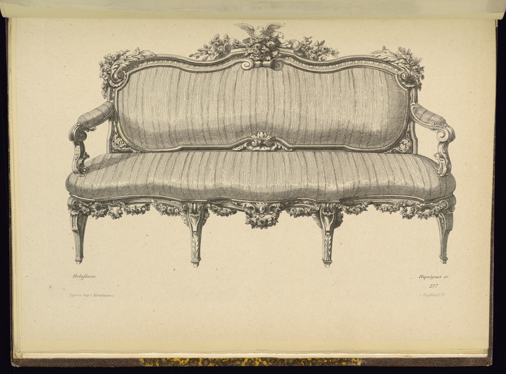 Print, Design for a Sofa; Designed by Jean-Charles Delafosse (French, 1734–1791); Printed by Pierron (French, active 1849 – 1866); Print Maker: Auguste Péquégnot (French, 1819 – 1878); France; etching on paper; Purchased for the Museum by the Advisory Council; 1921-6-456-33