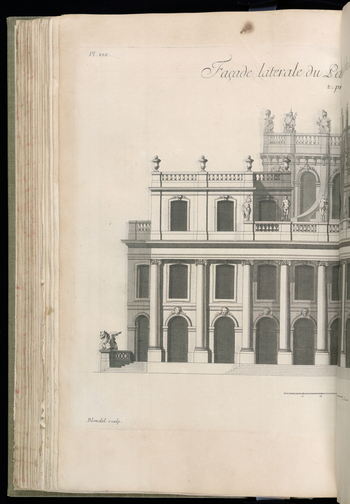 This is a Bound print. It was designed by Germain Boffrand and published by Guillaume Cavalier Père and engraved by Jacques-François Blondel and Pierre François Tardieu and collaborator: François Boucher. It is dated 1745 and we acquired it in 1920. It is a part of the Drawings, Prints, and Graphic Design department.