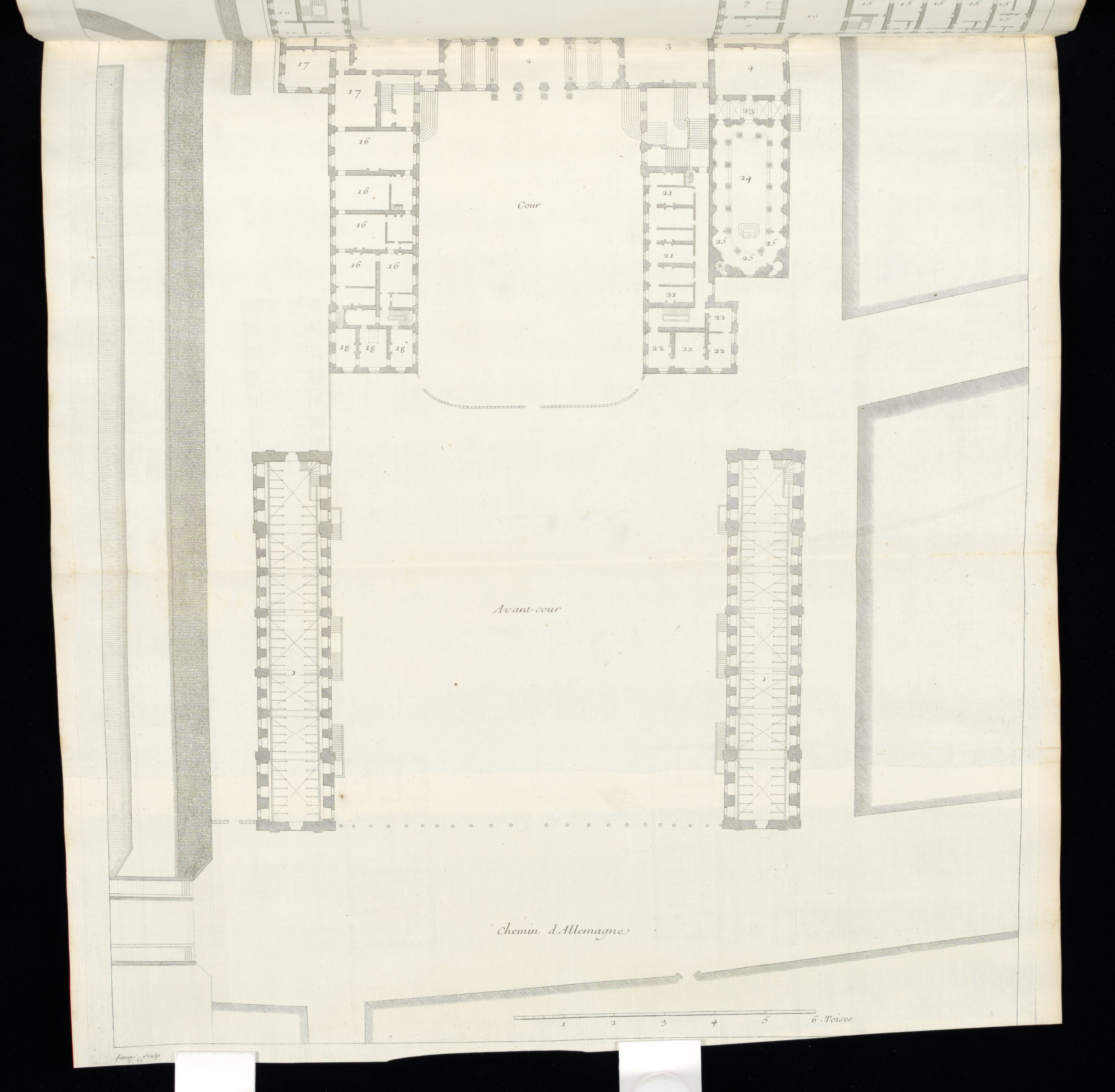 This is a Bound print. It was designed by Germain Boffrand and published by Guillaume Cavalier Père and engraved by Jacques-François Blondel and Pierre François Tardieu and collaborator: François Boucher. It is dated 1745 and we acquired it in 1920. It is a part of the Drawings, Prints, and Graphic Design department.