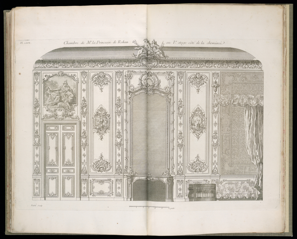 This is a Bound print. It was designed by Germain Boffrand and published by Guillaume Cavalier Père and engraved by Jacques-François Blondel and Pierre François Tardieu and collaborator: François Boucher. It is dated 1745 and we acquired it in 1920. It is a part of the Drawings, Prints, and Graphic Design department.