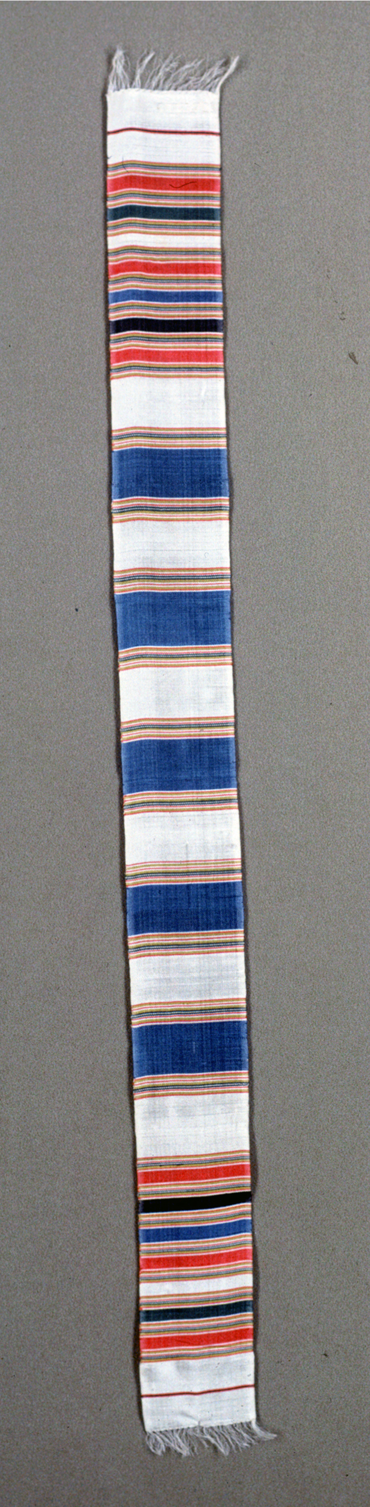 This is a Sash. It is dated 19th century and we acquired it in 1923. Its medium is silk. It is a part of the Textiles department.