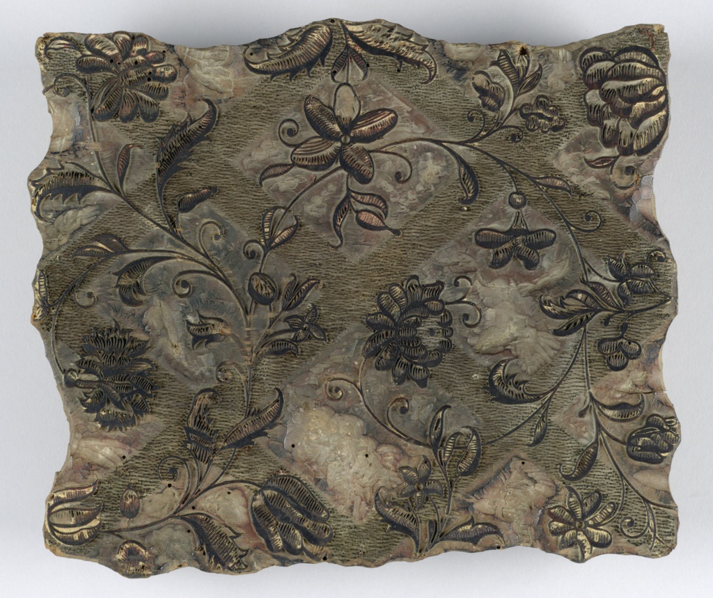 This is a Printing block. It is dated late 18th century and we acquired it in 1925. Its medium is wood, metal. It is a part of the Textiles department.
