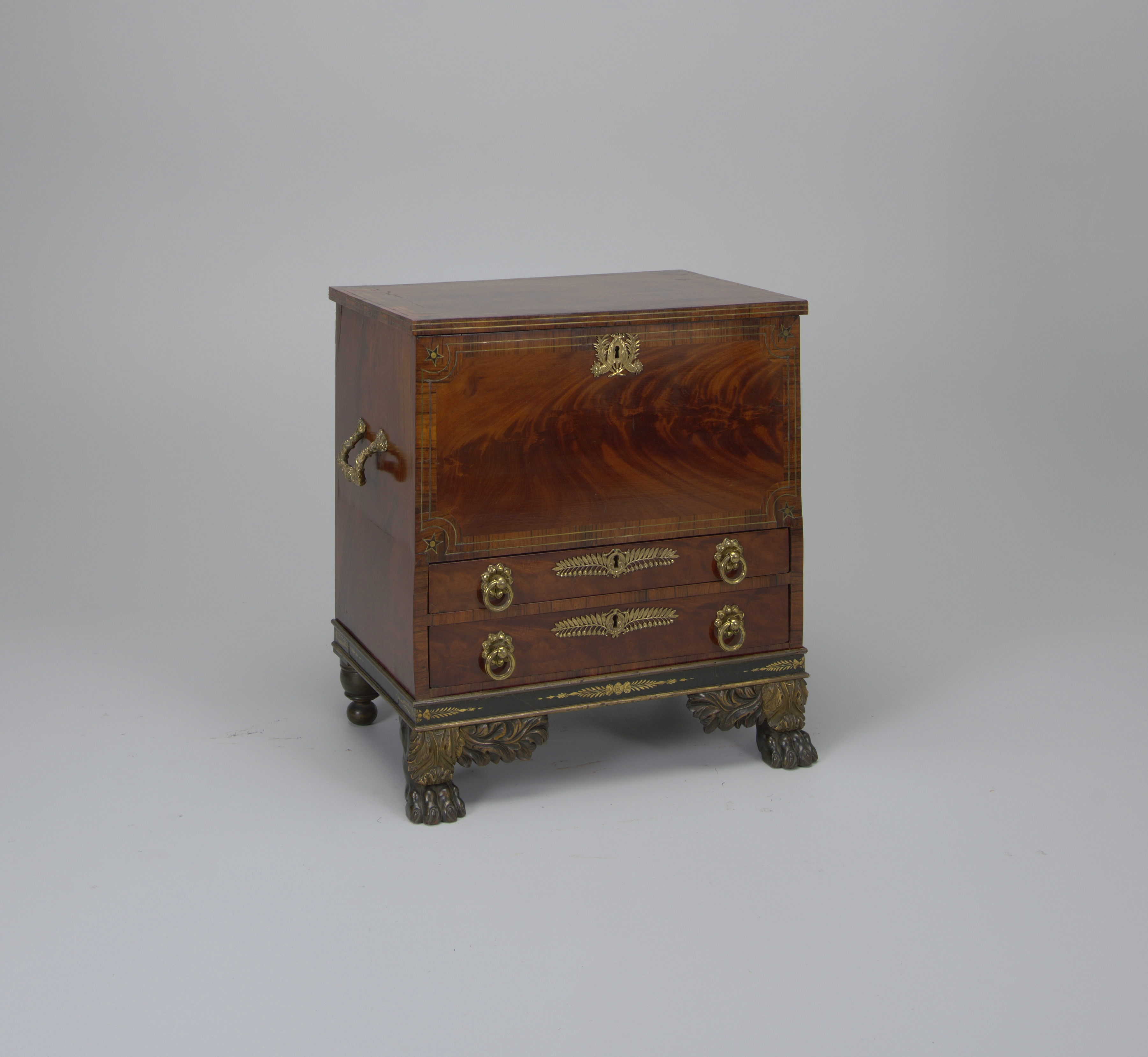 This is a Chest. It was made by Unknown. It is dated ca. 1825 and we acquired it in 1926. Its medium is mahogany, brass, gilt bronze. It is a part of the Product Design and Decorative Arts department.