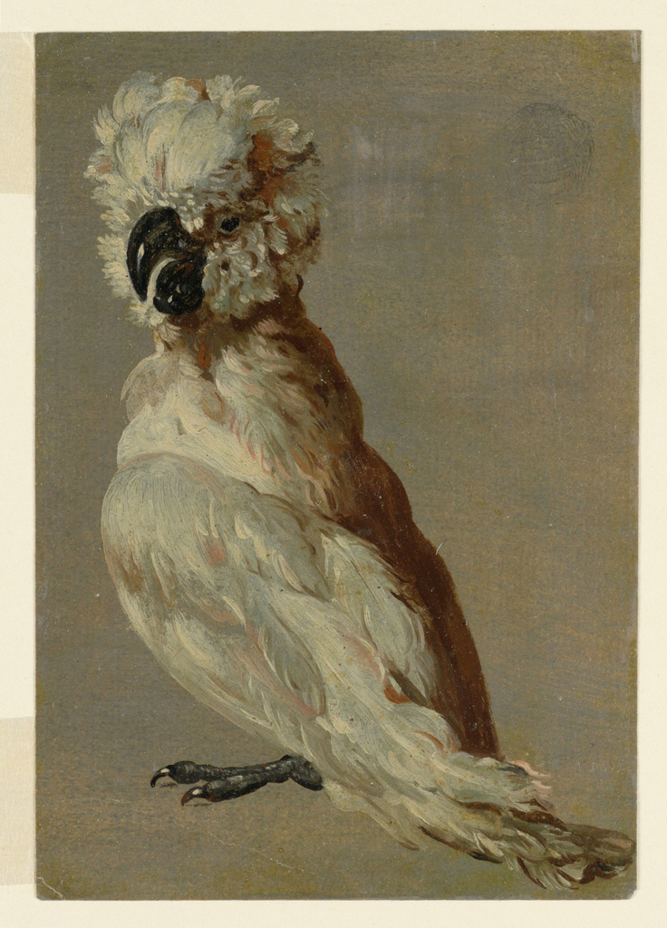 Drawing, A White-Brown Cockatoo; After Frans Snyders (Flemish, 1579–1657); Belgium; oil on paper; 17.7 x 12.3 cm (6 15/16 x 4 13/16 in.); Museum purchase from Au Panier Fleuri Fund; 1927-22-2