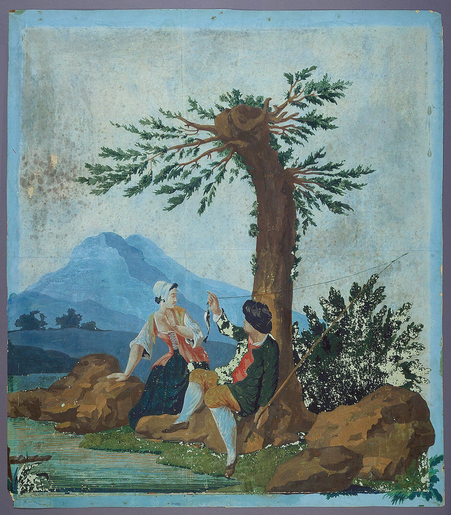 This is a overdoor. It is dated 1780–90 and we acquired it in 1931. Its medium is block-printed on handmade paper. It is a part of the Wallcoverings department.