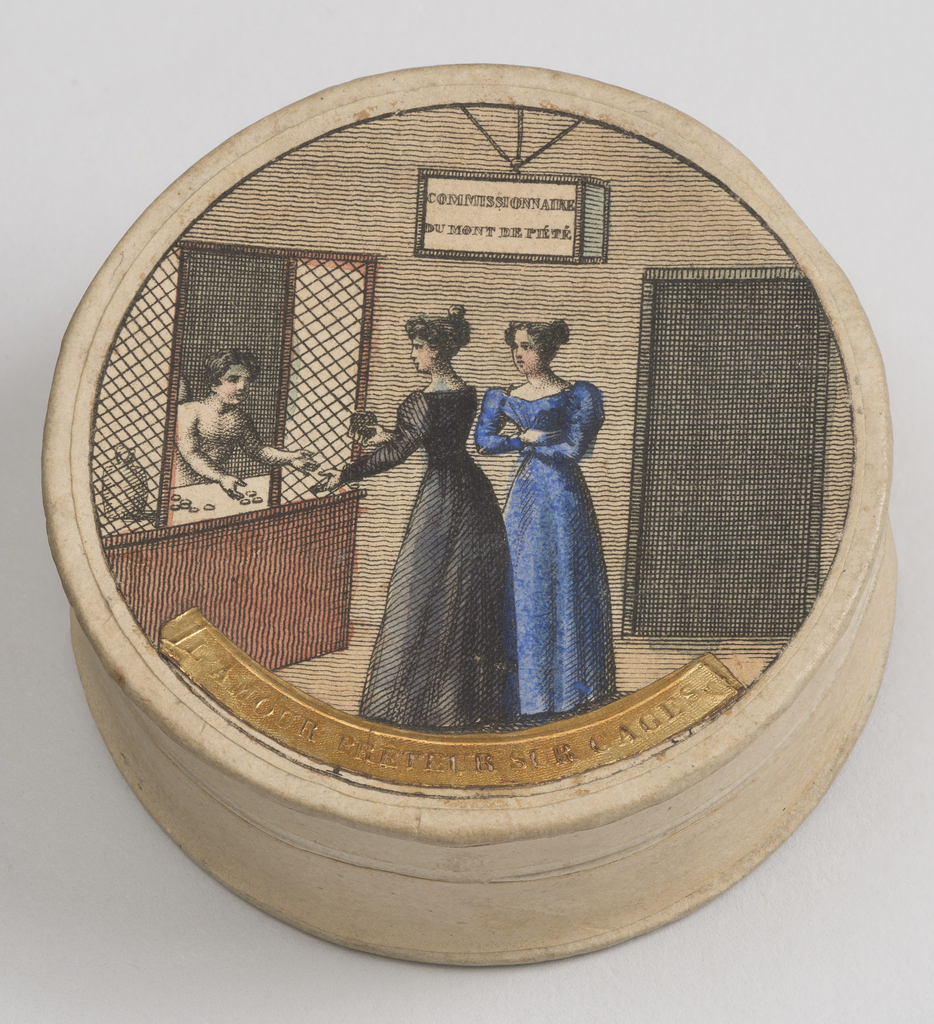 This is a Pastille box and cover. We acquired it in 1931. Its medium is paper. It is a part of the Product Design and Decorative Arts department.