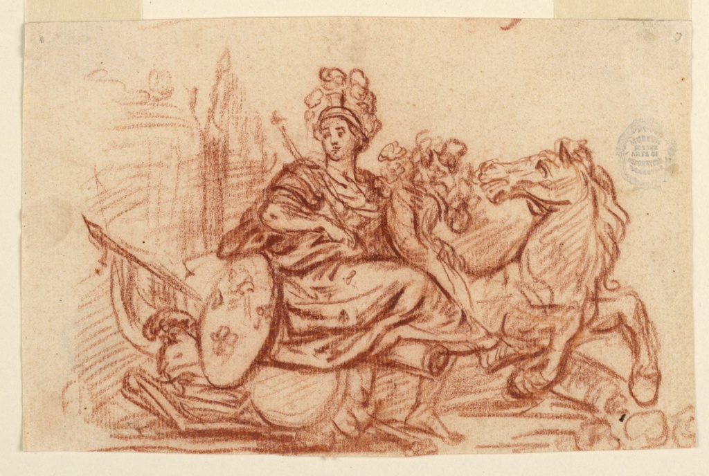 Drawing, Study for A Personification of Europe; France; red chalk on laid paper; 10.8 × 16.9 cm (4 1/4 × 6 5/8 in.); Gift of Eleanor and Sarah Hewitt; 1931-64-208