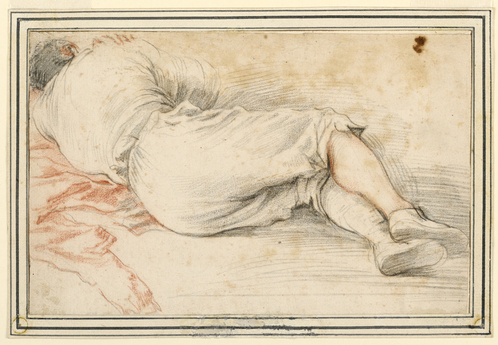 Drawing, Reclining Figure; Print Maker: Lodovico Carracci (Italian, 1555 - 1619); Italy; black and red crayon on paper; Gift of Eleanor and Sarah Hewitt; 1931-64-77