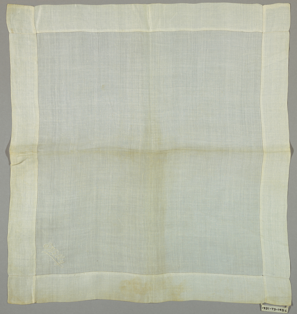 This is a Handkerchiefs. It is dated late 19th century and we acquired it in 1931. Its medium is linen, cotton, silk and its technique is embroidered. It is a part of the Textiles department.