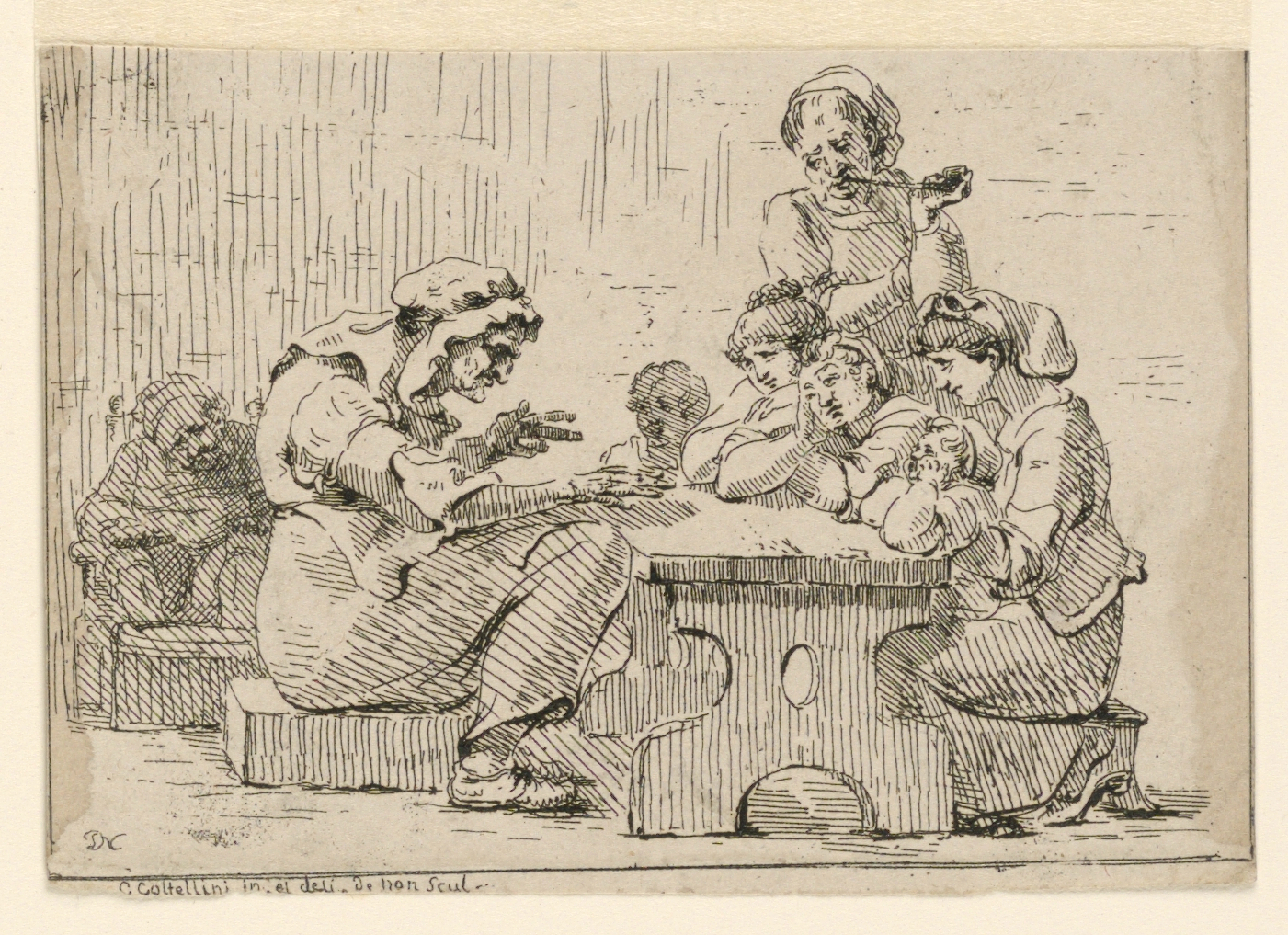 Print, Old Woman and Children Around a Table; Print Maker: Dominique Vivant Denon (French, 1747 - 1825); After C. Coltellini (active 1751 - 1781); France; etching on paper; 7.7 × 11.1 cm (3 1/16 × 4 3/8 in.); Gift of Eleanor and Sarah Hewitt; 1931-94-246