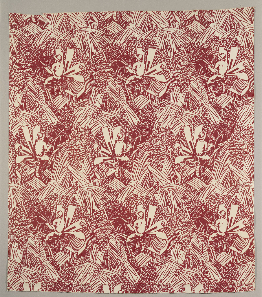 Textile, La Moisson (The Thresher); Produced by Bianchini-Férier, Inc. (France); France; cotton warp, linen weft; H x W: 134.6 x 120.7 cm (53 x 47 1/2 in.); Museum purchase from Au Panier Fleuri Fund; 1934-14-1