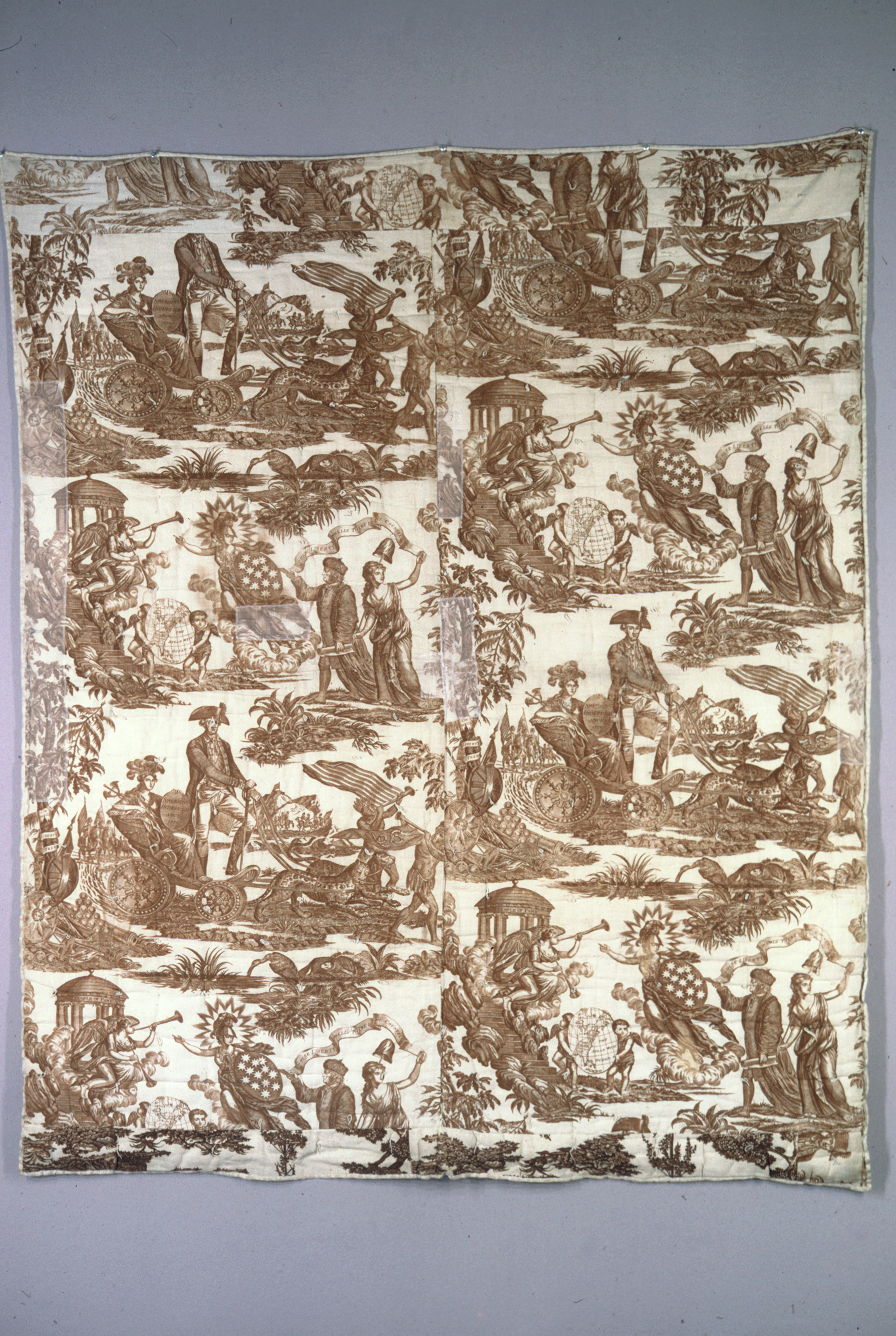 This is a Quilt. It is dated ca. 1780 and we acquired it in 1934. Its medium is cotton and its technique is copperplate printed on plain weave. It is a part of the Textiles department.