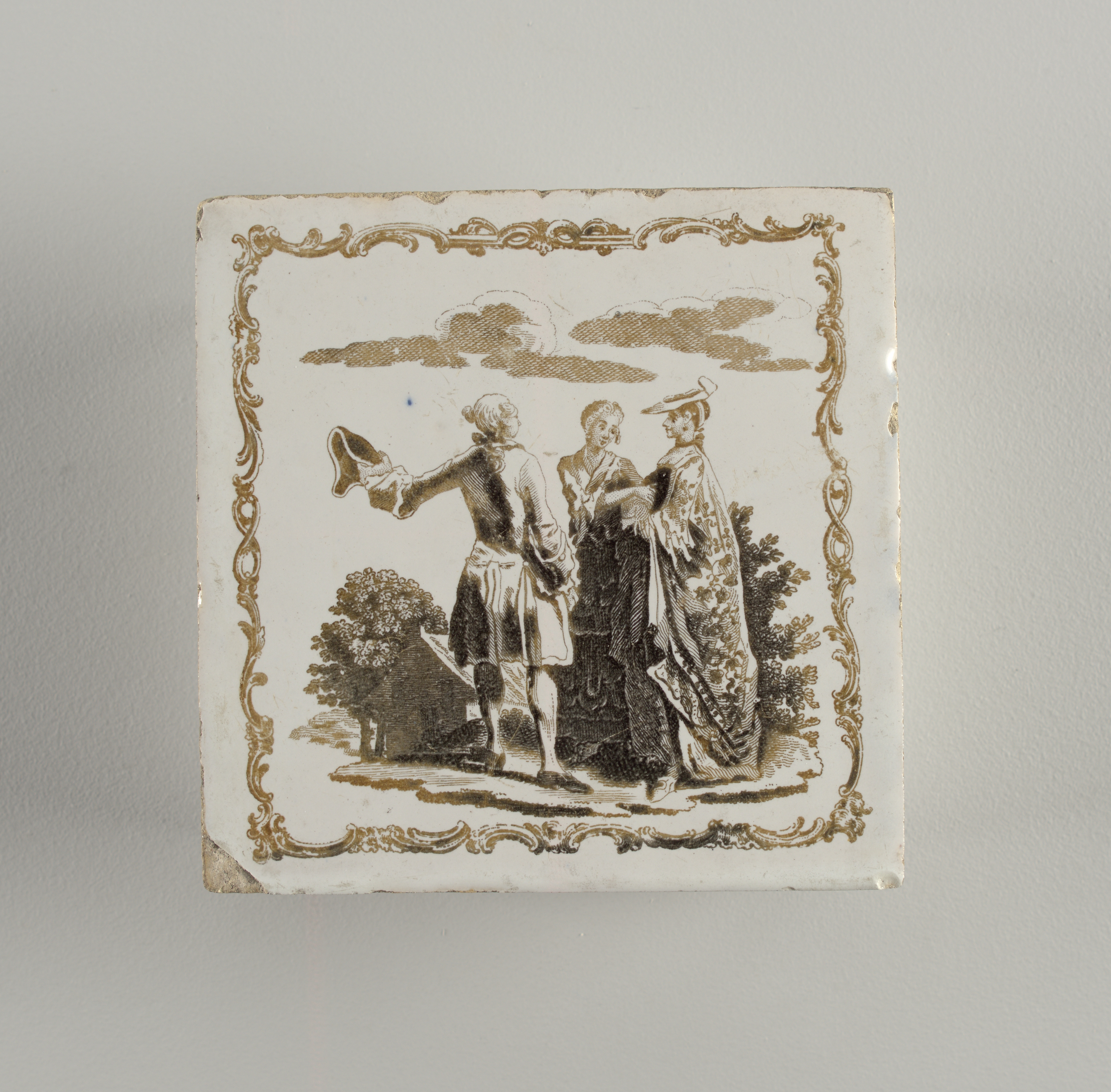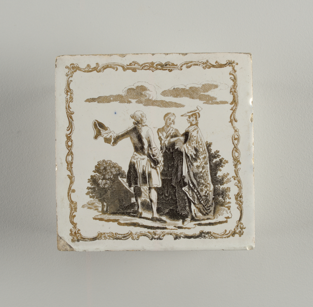 This is a tile. It was created by Sadler and Green. It is dated 1760 and we acquired it in 1935. Its medium is glazed pottery with over glaze, transfer-printed decoration.. It is a part of the Product Design and Decorative Arts department.