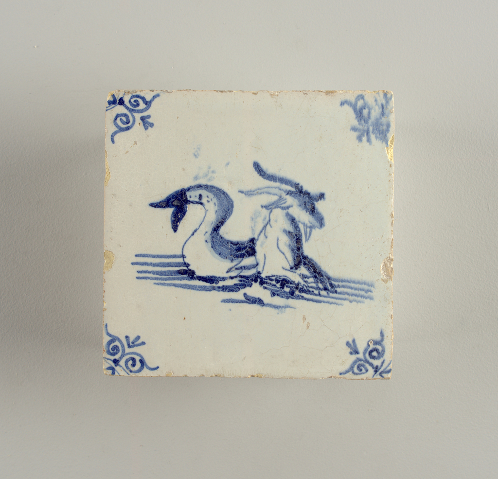 Tile (Netherlands); tin-enamelled earthenware; H x W x D: 1 x 12.8 x 13 cm (3/8 x 5 1/16 x 5 1/8 in.); 1936-18-1