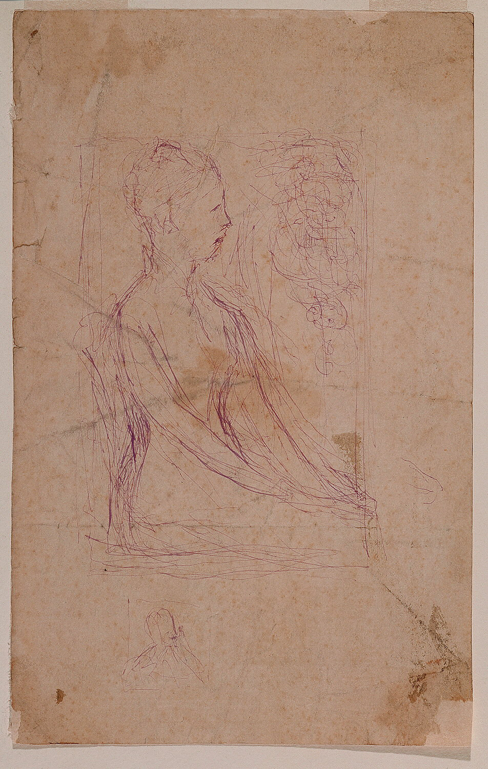 Drawing, Study for the Violet Sargent Bronze Plaque in the Art Institute of Chicago; Augustus Saint-Gaudens (American, 1848 – 1907); USA; pen and purple ink on cream laid paper; 17.6 × 11.1 cm (6 15/16 × 4 3/8 in.); Gift of Homer Saint-Gaudens; 1937-70-3