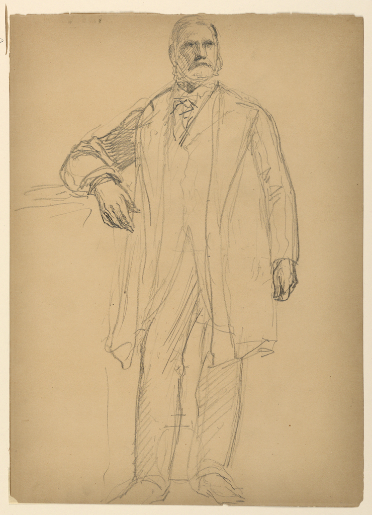 Drawing, President Chester Alan Arthur Standing; Daniel Huntington (American, 1816–1906); Sitter: Chester A. Arthur (1830 – 1886); USA; graphite on light brown wove paper verso: graphite and white chalk; 35.4 x 25.5 cm (13 15/16 x 10 1/16 in.) ; Bequest of Erskine Hewitt; 1938-57-1057