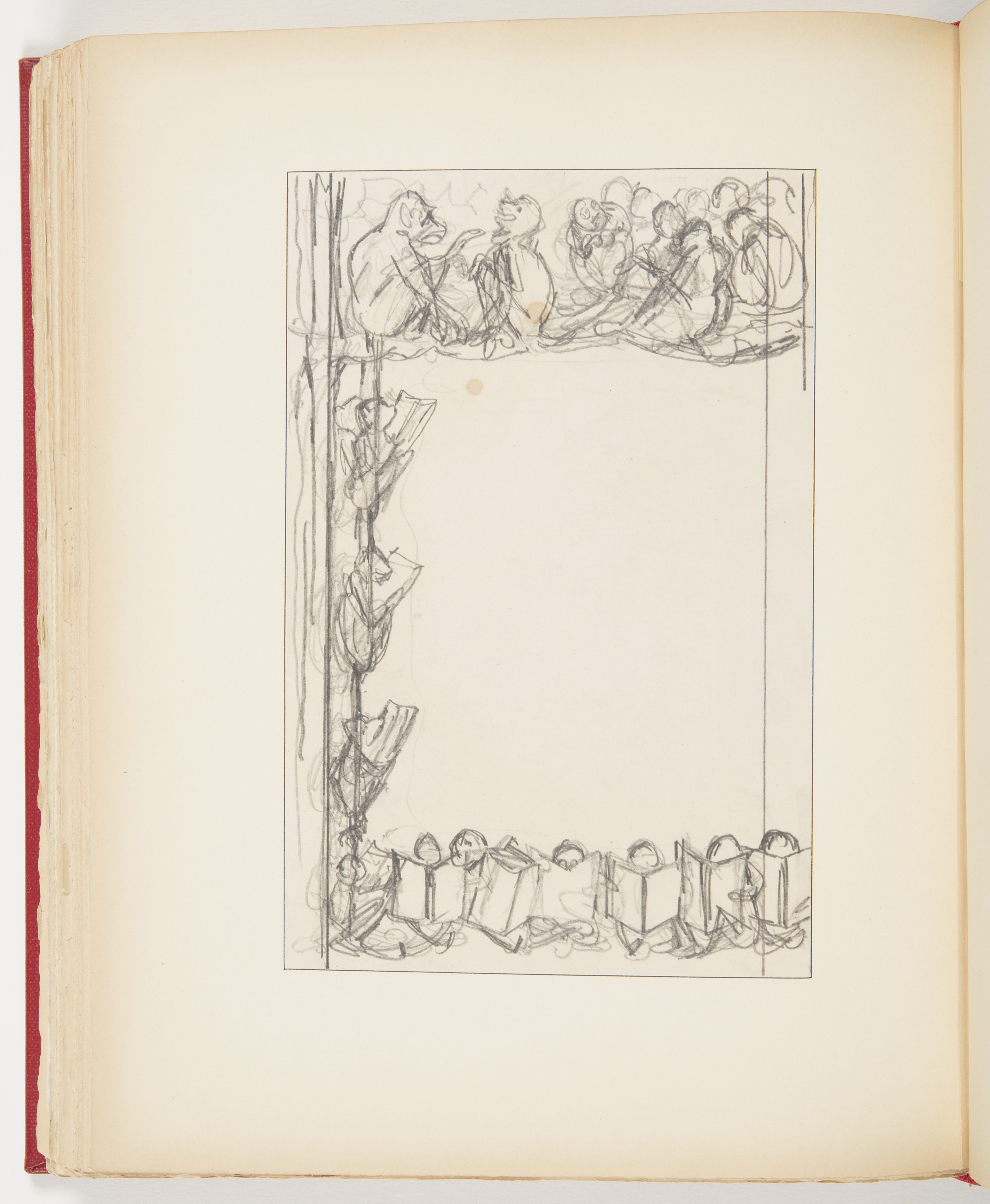 Ephemera, Sketch for “The Socratic Chimpanzee and the Shadow Baboon” in “Fables, Out of This World”; Illustrated by Frederick Stuart Church (American, 1842–1924); Collected by Dr. Dudley Tenney (New York City); USA; graphite on paper; Bequest of Erskine Hewitt; 1938-57-1070-208