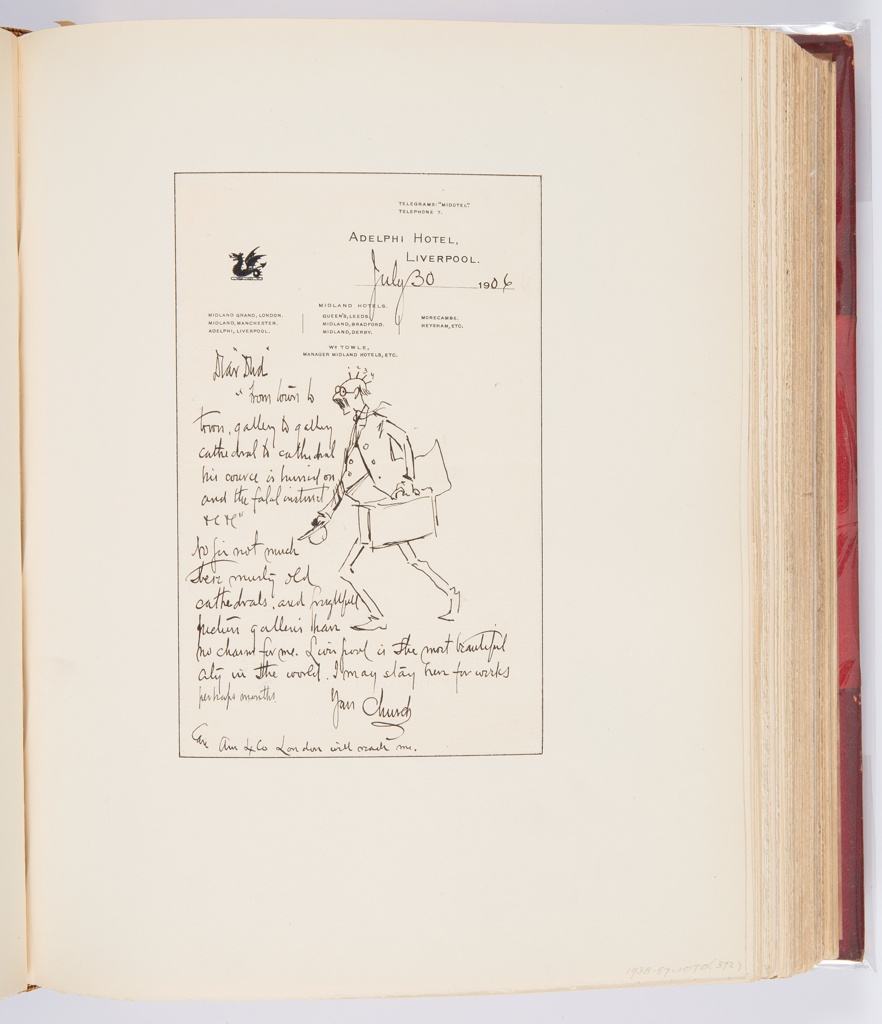 This is a Ephemera. It was written by Frederick Stuart Church and collected by Dr. Dudley Tenney. It is dated July 30, 1906 and we acquired it in 1938. Its medium is pen and black ink on paper. It is a part of the Drawings, Prints, and Graphic Design department.