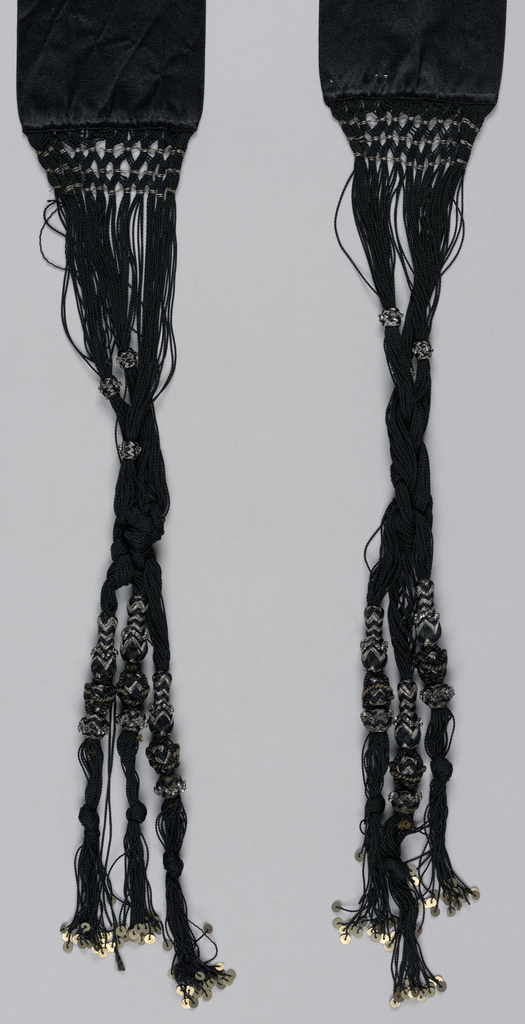 This is a Belt. It is dated late 19th century and we acquired it in 1938. Its medium is silk and its technique is satin weave. It is a part of the Textiles department.