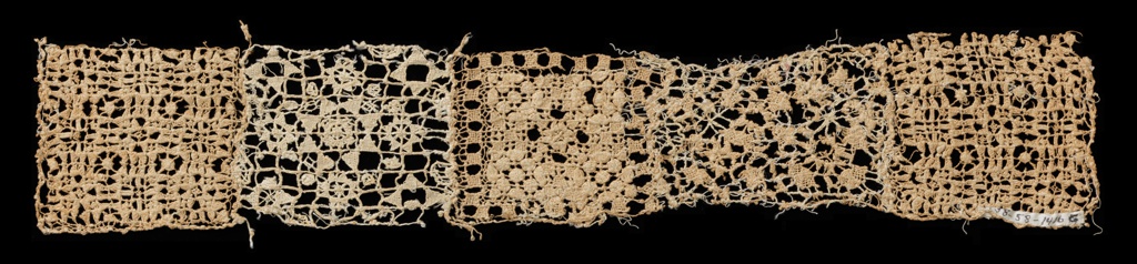 This is a Fragments. It is dated 17th century and we acquired it in 1938. Its medium is linen, silk and its technique is needlework on hand knotted net. It is a part of the Textiles department.